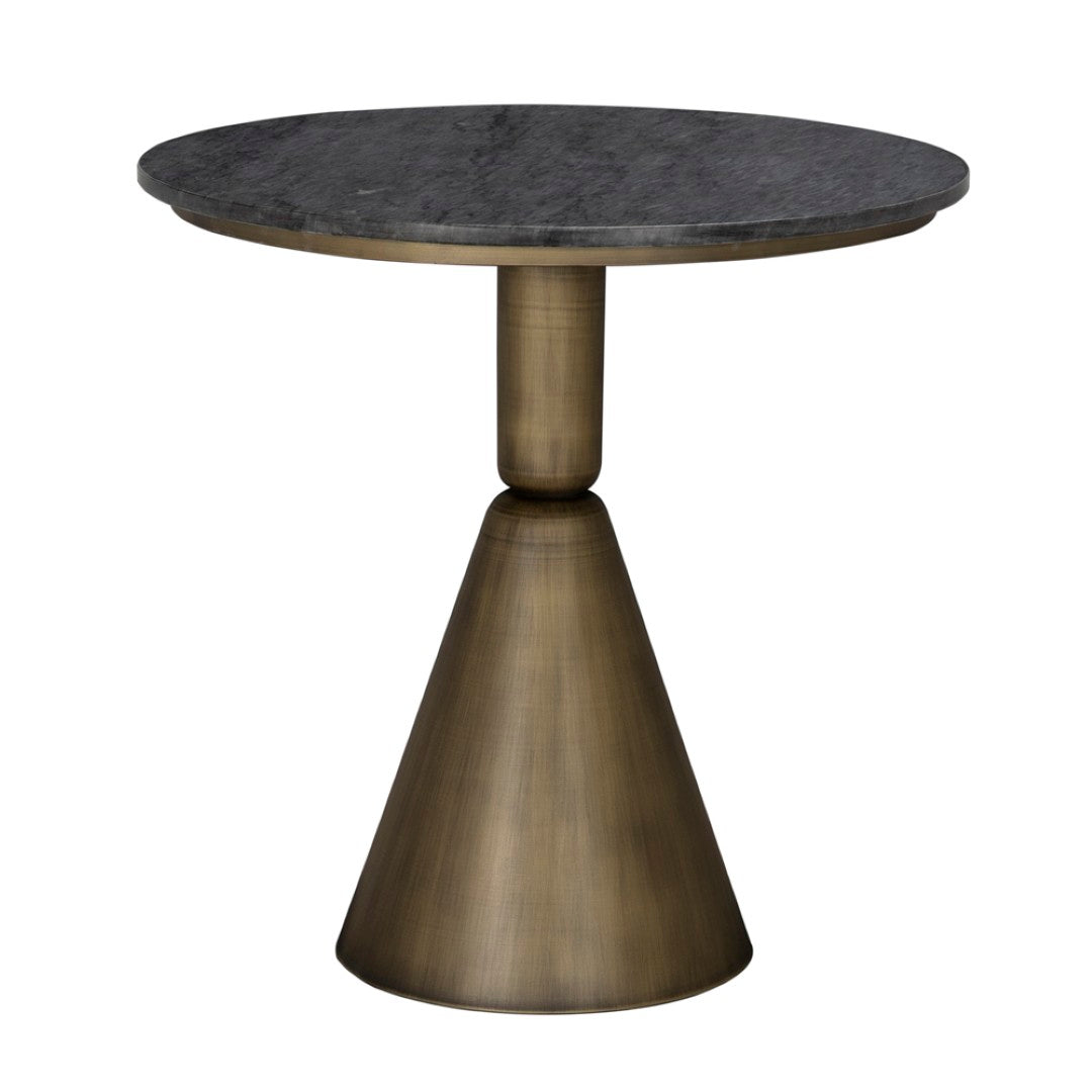 The Nagoya Side Table blends industrial strength with luxurious accents to create a striking focal point for living rooms, entryways, or offices. Its aged brass steel base and rich black marble top offer a refined contrast that suits modern, transitional, and eclectic interiors, while durable materials ensure lasting beauty and function.