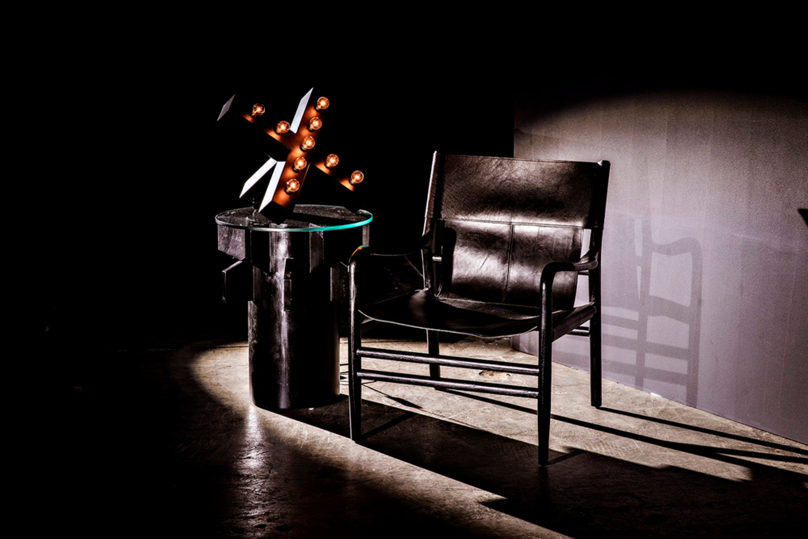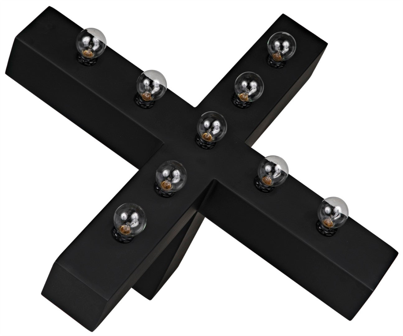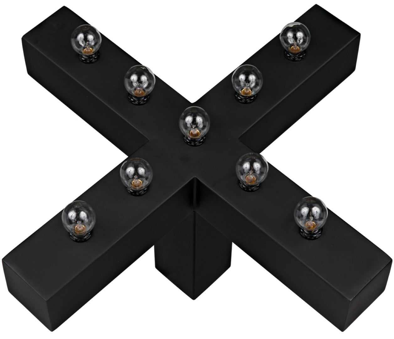 - Design: Handcrafted metal "X" form that functions as both a decorative sculpture and a lighting source