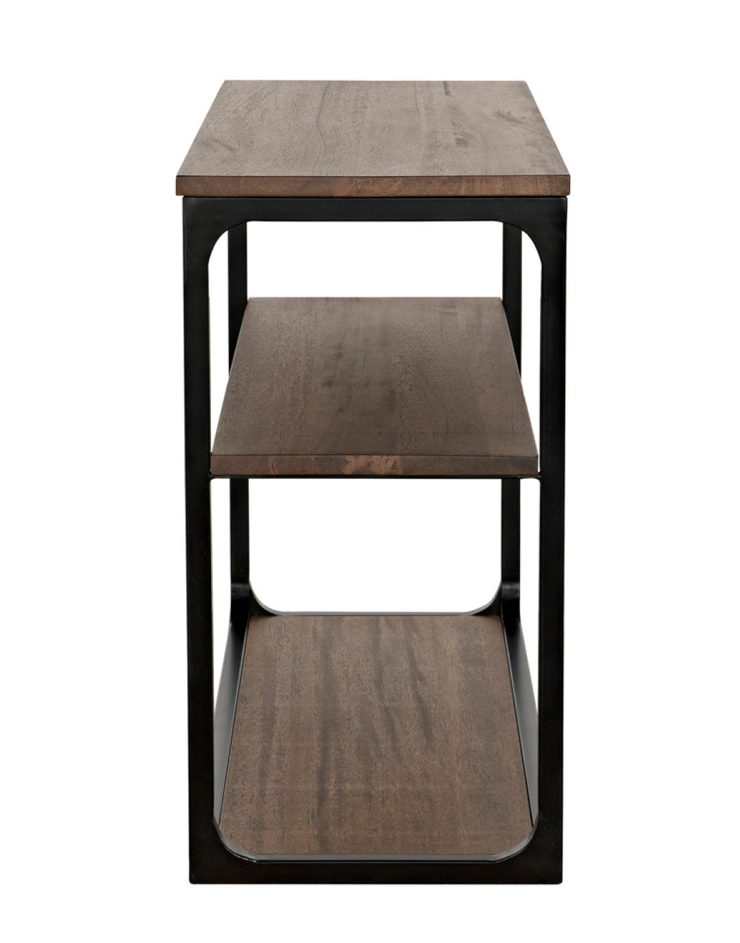 Elevate your entryway or living space with the Novie Console — a large, handcrafted piece that combines warm walnut surfaces with a clean, matte black iron frame for a modern yet timeless profile. Thoughtfully designed to showcase skilled woodworking and restrained metalwork, this console offers generous surface area for display and everyday utility while maintaining a sleek, unfussy silhouette that complements contemporary, industrial, and transitional interiors.