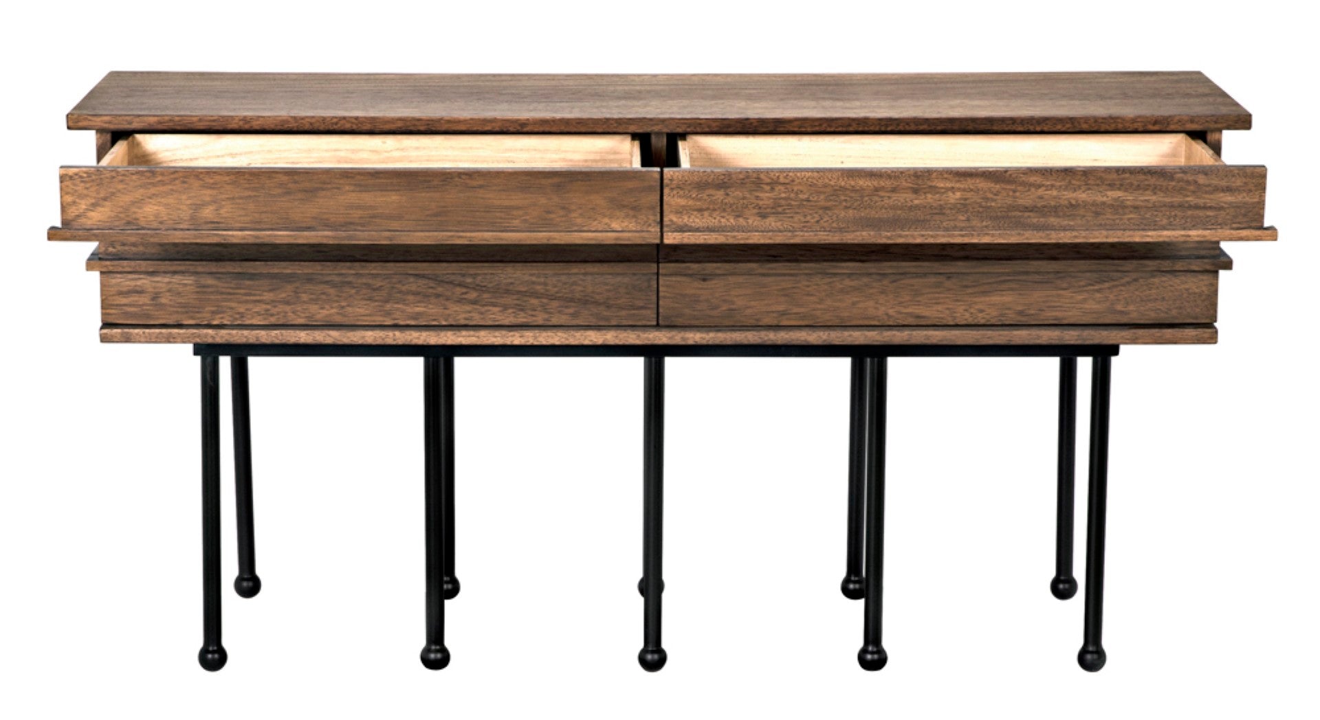 Elevate your entryway or living room with the Oliver Console — a refined blend of warm walnut and industrial steel that pairs classic woodworking with modern design. Its clean lines, rich Dark Walnut finish, and sturdy Matte Black base create a versatile focal point that works equally well in traditional, transitional, and industrial-inspired interiors.