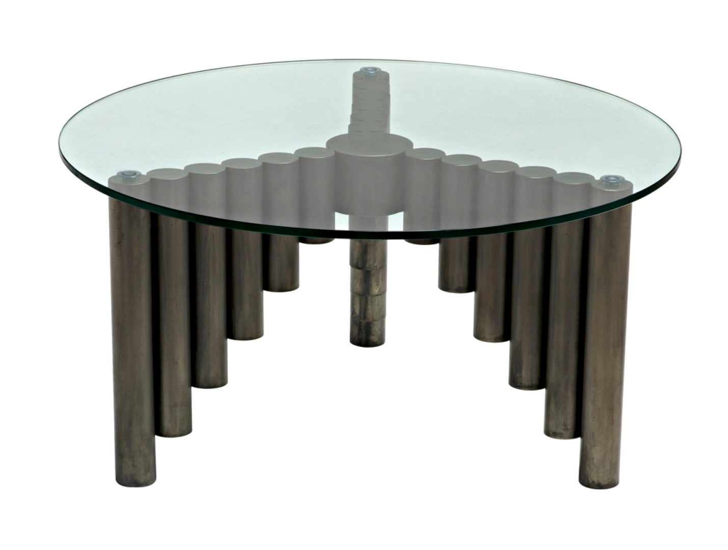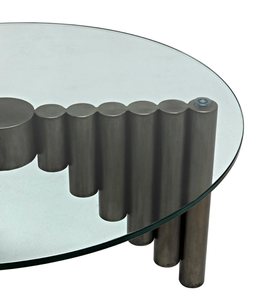 Elevate your living space with the Organum Coffee Table — a sculptural centerpiece that blends industrial strength with refined elegance. Its graduated steel cylinders in a modern gun metal finish support a sleek glass top, creating an eye-catching silhouette that complements contemporary and transitional interiors. Durable materials and thoughtful proportions make this table both stylish and functional for everyday use.