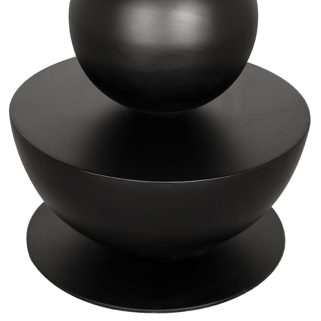 Elevate your kitchen or bar area with this sculptural swivel counter stool that blends modernist geometry and functional comfort. Its stacked silhouette — dome, cylinder, sphere, and cone — creates a striking focal point while the matte black iron finish provides a durable, low-maintenance surface that complements contemporary and minimalist interiors.