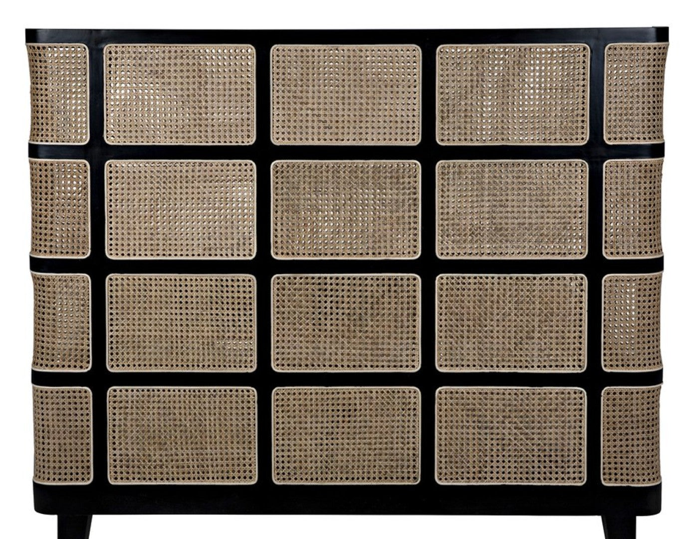 Experience refined craftsmanship and timeless design with this striking mahogany bed, where a hand-rubbed black finish beautifully contrasts with naturally finished cane panels. The subtly curved headboard and footboard create a gentle, cradle-like silhouette that adds both comfort and visual interest to your bedroom. Ideal for those who appreciate warm wood tones, artisanal details, and a sophisticated yet relaxed aesthetic.
