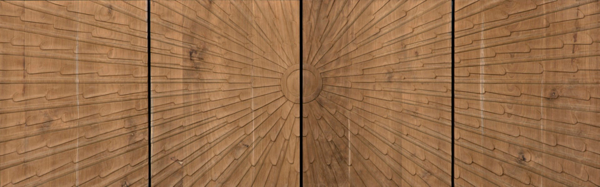 - Craftsmanship: Hand-carved starburst pattern on doors for striking visual detail
