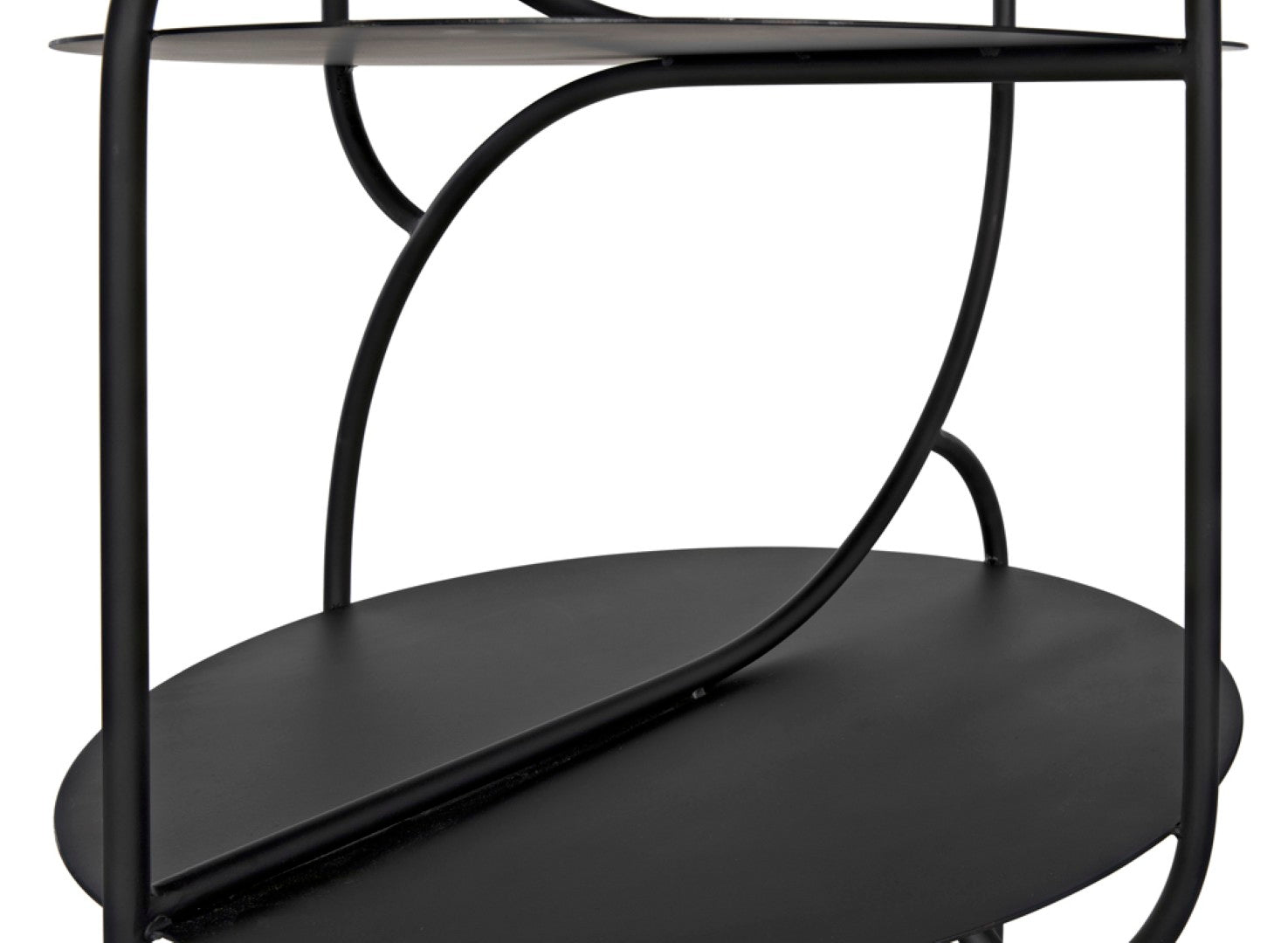 - Design: Unique, edgy silhouette with open shelving for stylish display and easy access