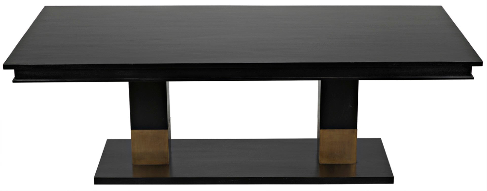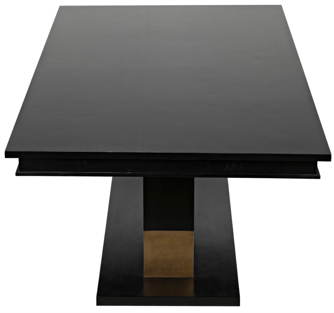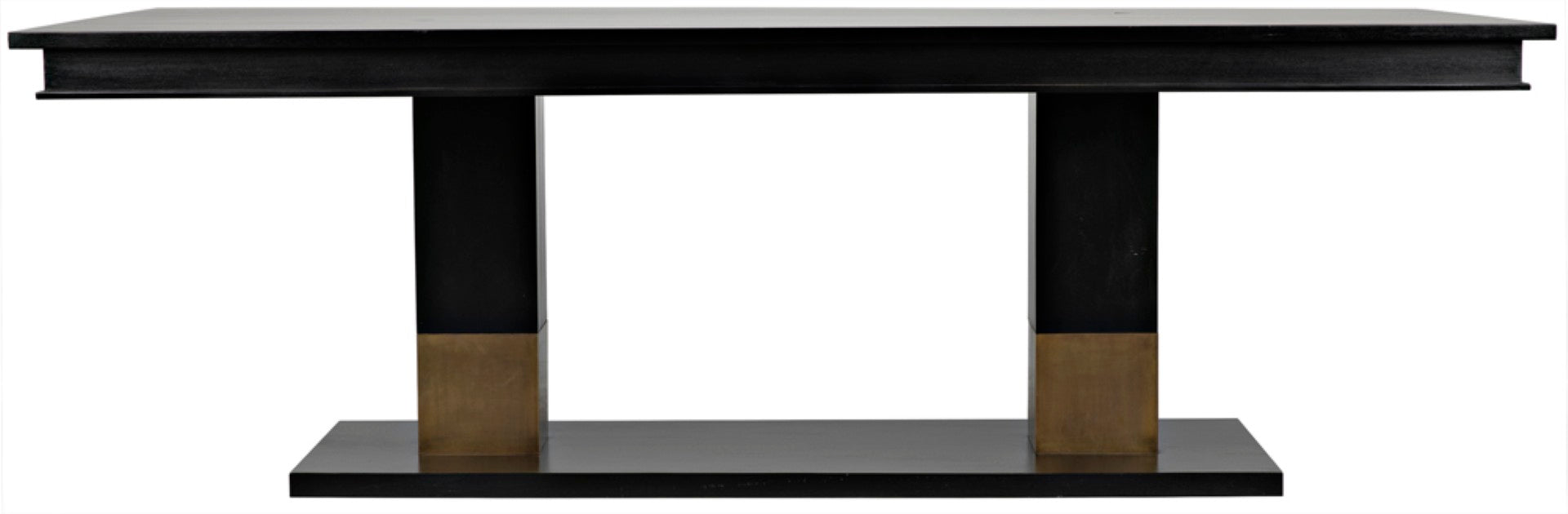 Elevate your dining room with a handcrafted table that combines refined modern lines and rich, tactile materials. The Ravenko Dining Table showcases hand-rubbed black mahogany with subtle brass banding, creating a striking centerpiece that balances contemporary simplicity with artisanal detail. Built to highlight the natural beauty of the wood and engineered for lasting stability, it pairs effortlessly with a range of seating styles and interiors.