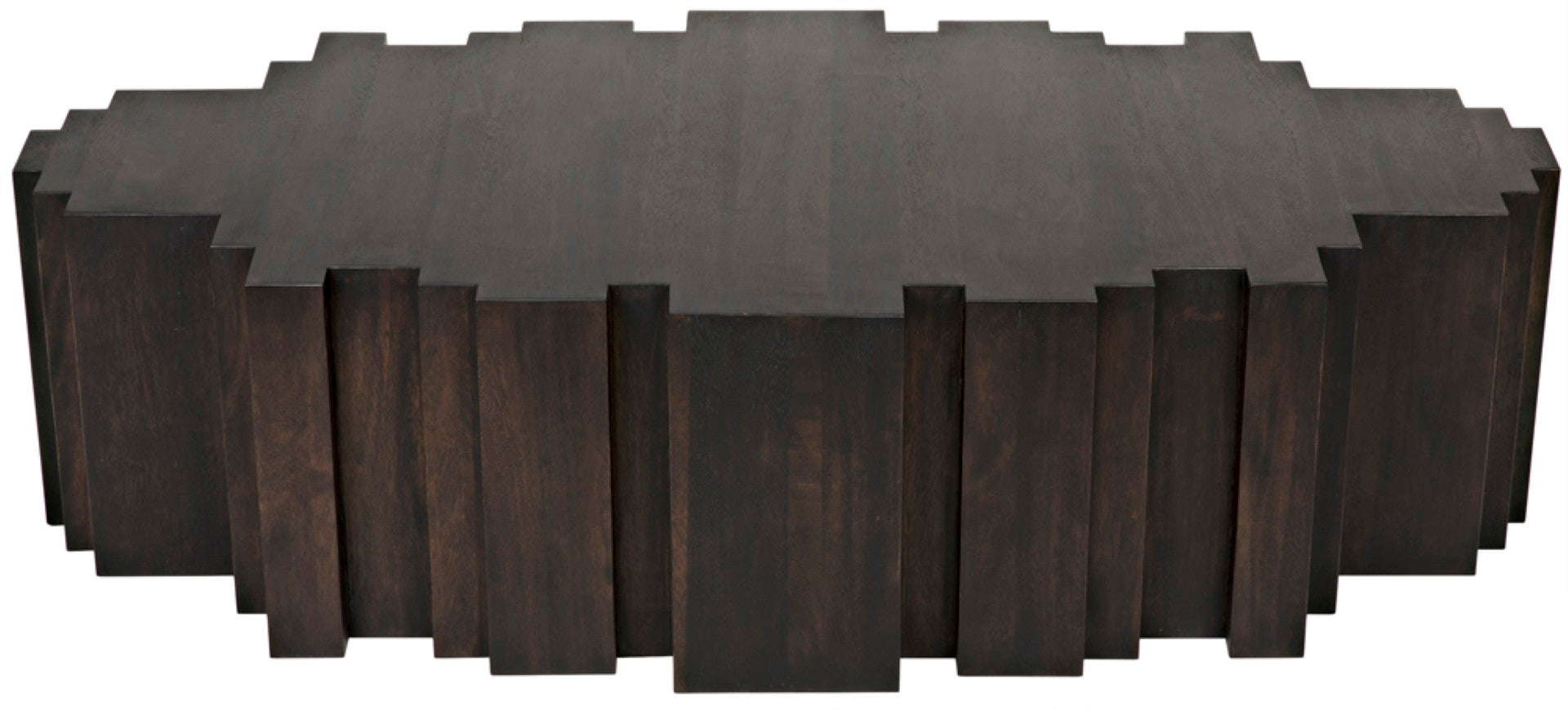 Elevate your living space with the Royce coffee table — a striking blend of modern simplicity and crafted detail. Rich ebony walnut finish highlights the wood's natural grain while the distinctive beveled edging creates visual interest and a refined silhouette. Designed for both form and function, this table anchors your seating area with enduring style and practical proportions.