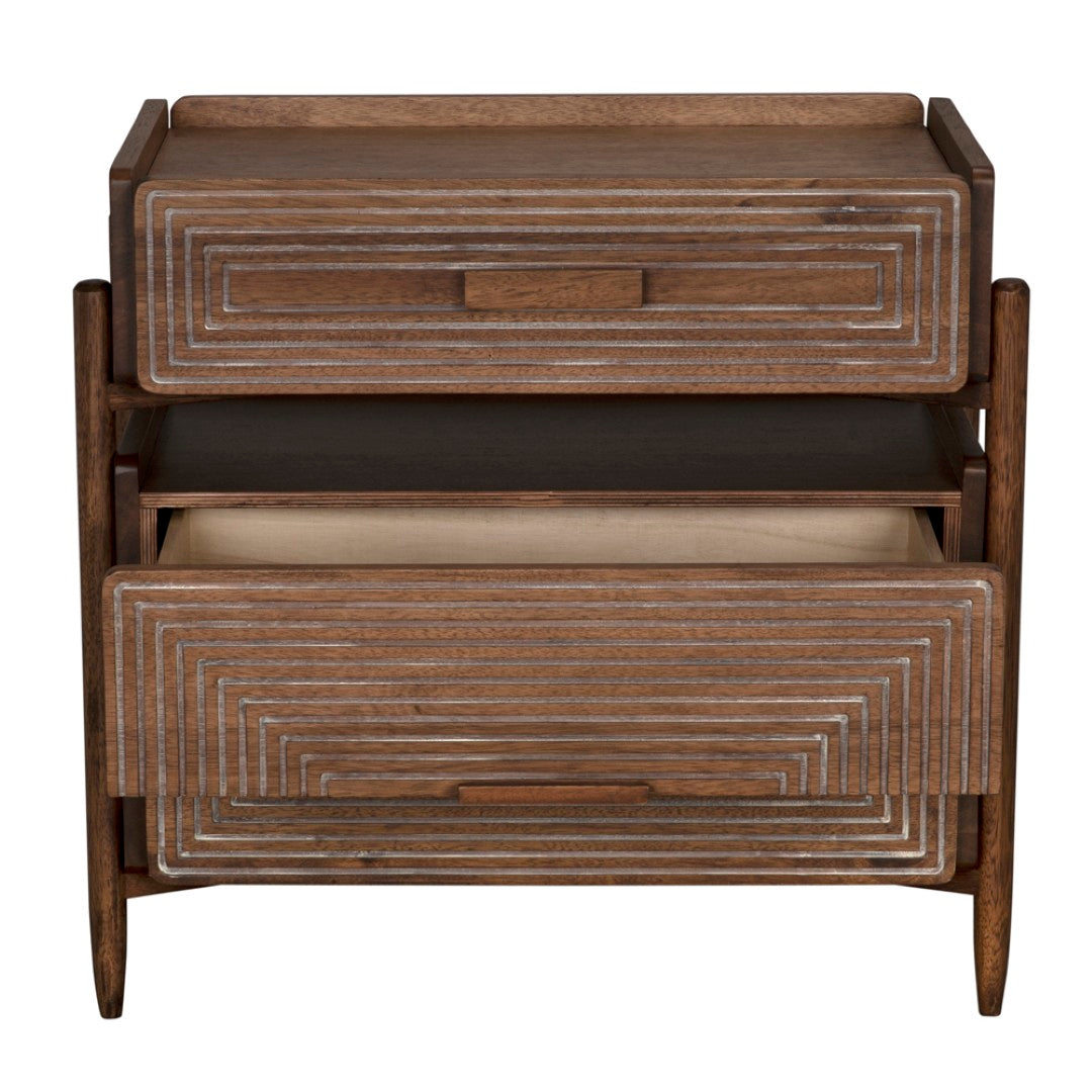 A striking blend of contemporary design and natural warmth, this handcrafted side table brings sculptural form and functional presence to living rooms, bedrooms, or entryways. Minimal finishing highlights the walnut's grain and texture, while the dark walnut finish adds depth and a refined, modern edge. Built for style and everyday use, it pairs effortlessly with a variety of decor styles from mid-century to industrial.