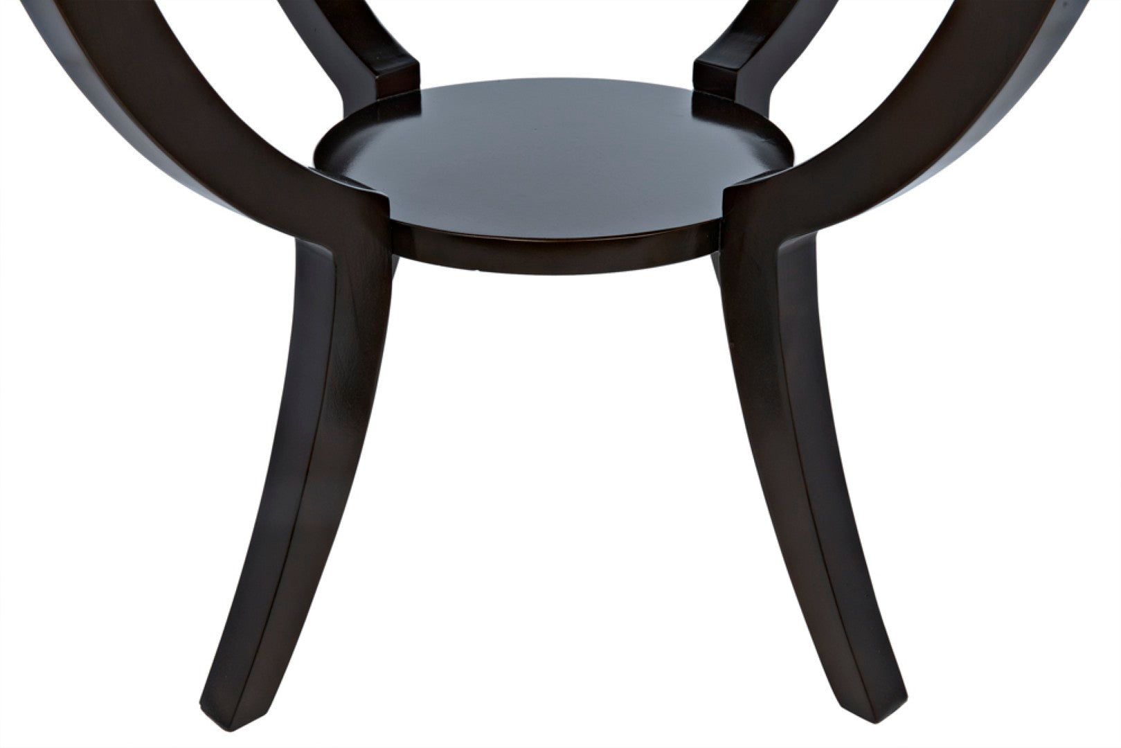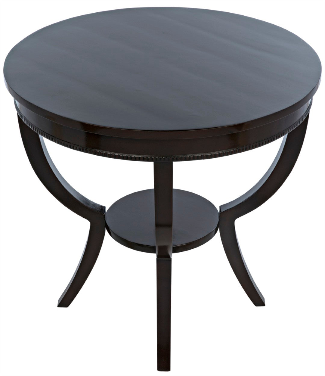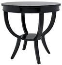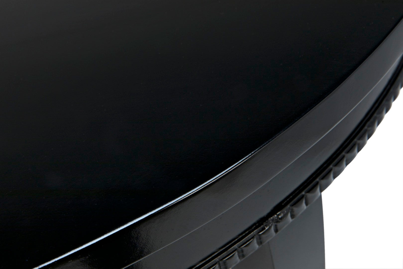 Add timeless elegance to your living space with this expertly crafted round end table. Its graceful curves, solid birch construction, and subtly hand-carved top combine traditional craftsmanship with a clean, versatile silhouette that complements both modern and classic interiors. The matte black finish is hand-applied and gently distressed for character, making this piece a refined focal point beside sofas, beds, or in entryways.