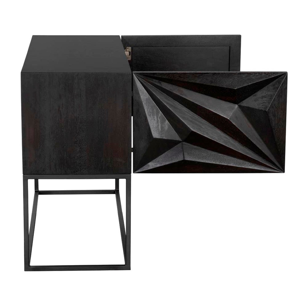 - Materials: Ebony walnut veneer over solid walnut elements, with industrial iron supports for stability and contrast