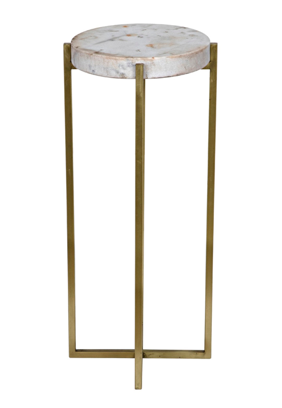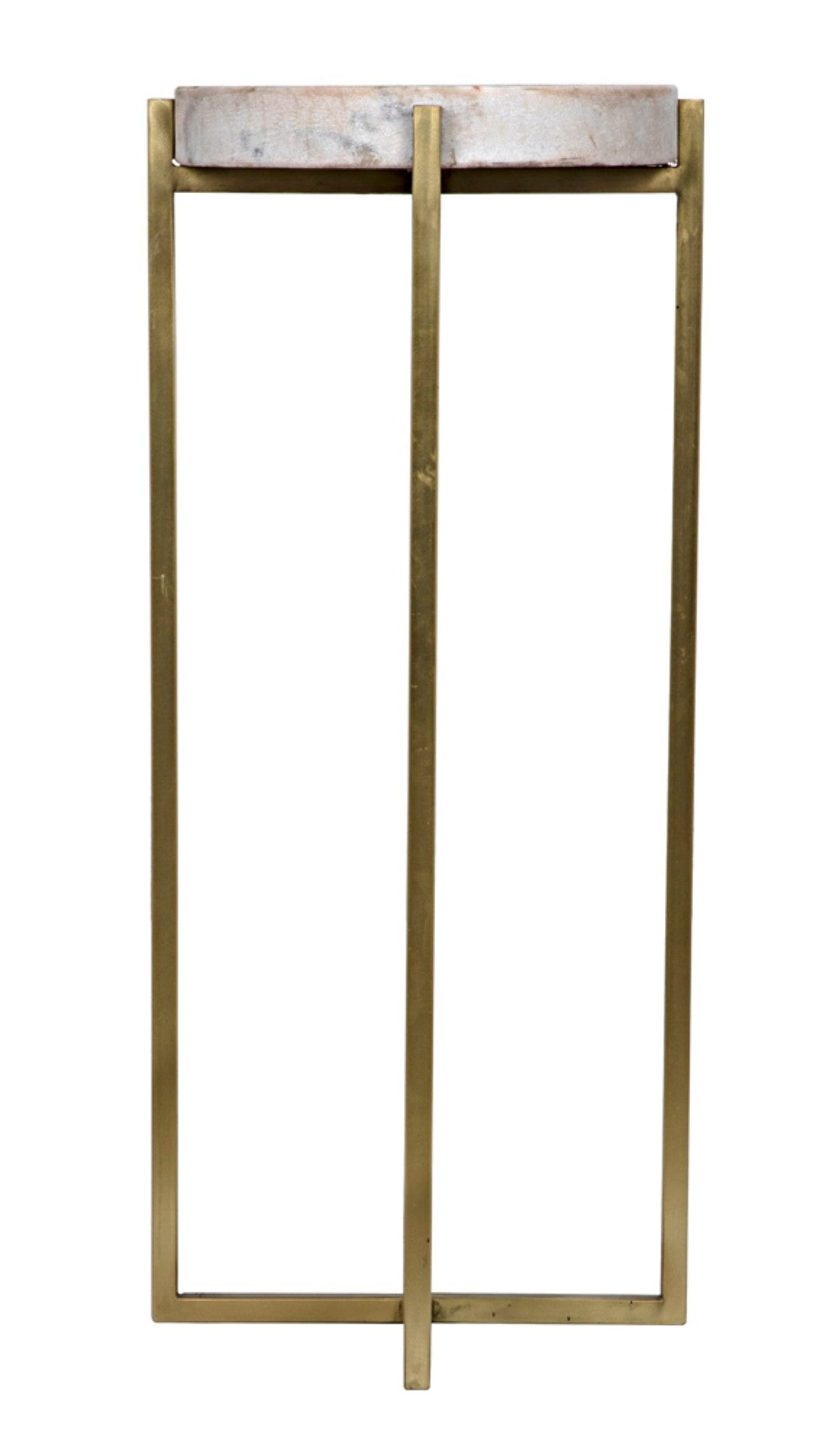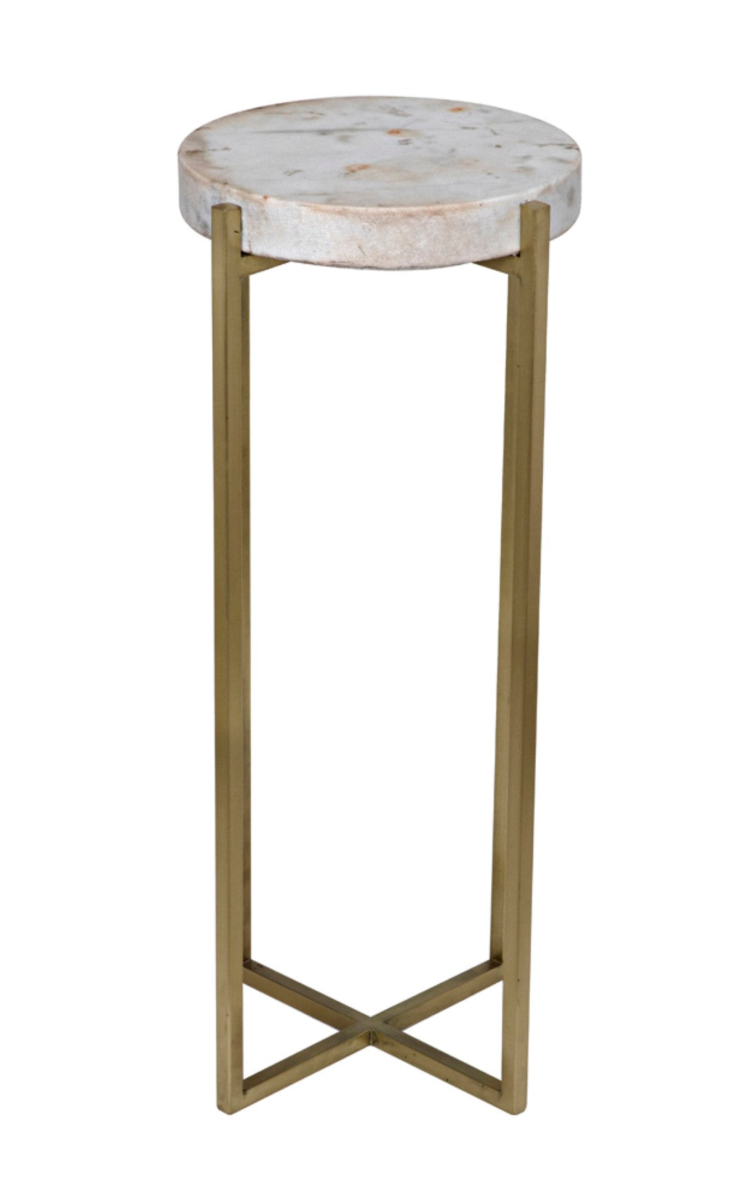 Elevate your living space with a refined side table that pairs cool Bianco Crown marble with warm antique brass for a timeless, contemporary accent. Its slim profile and clean lines make it ideal beside sofas, chairs, or in entryways where you need stylish surface space without bulk.