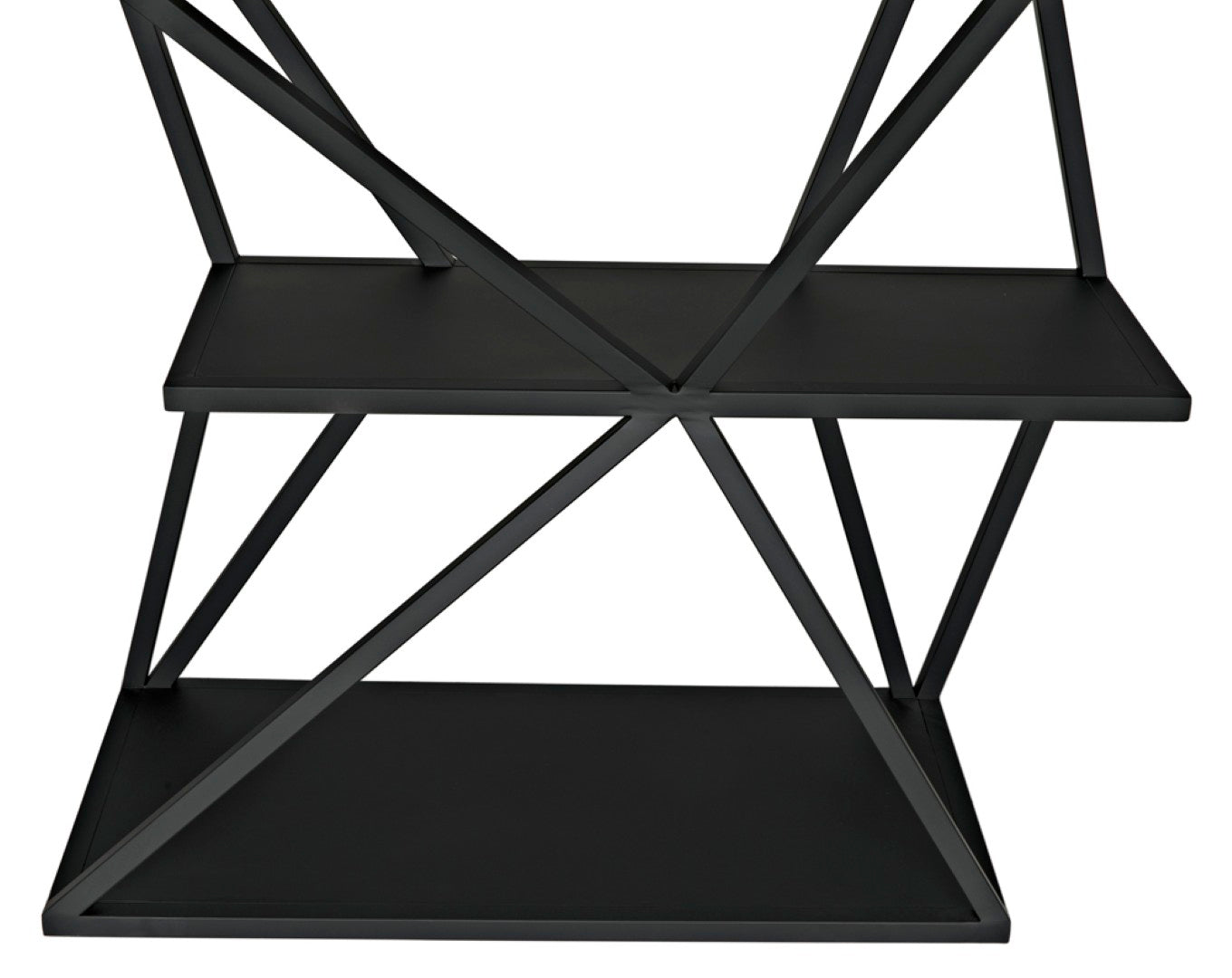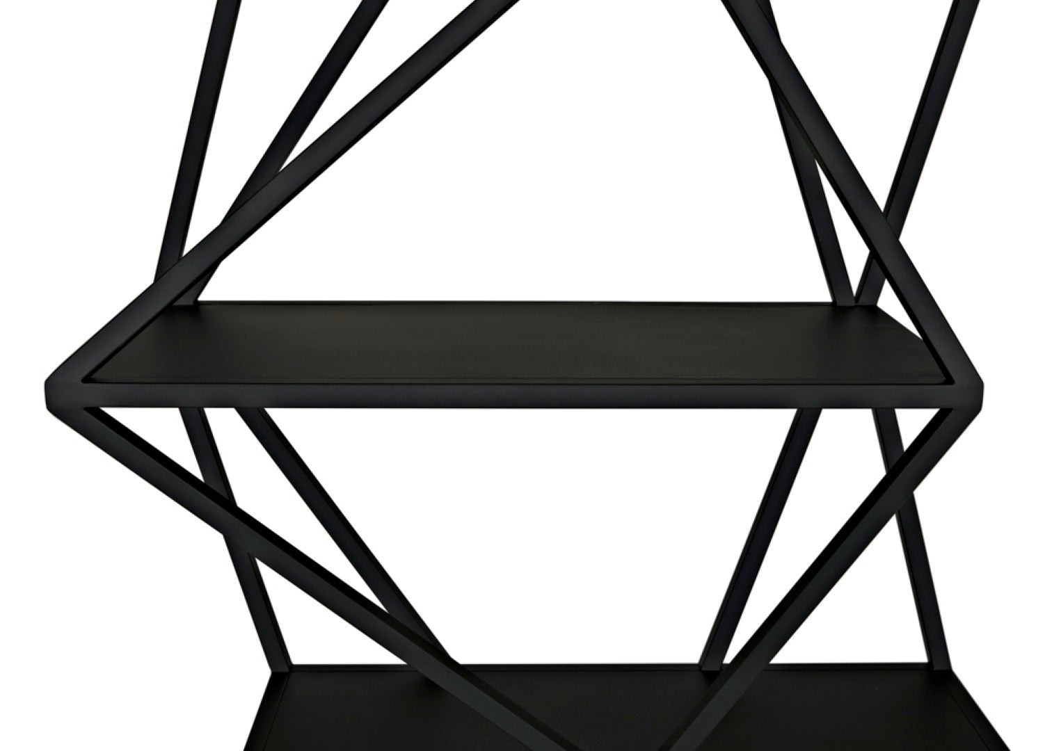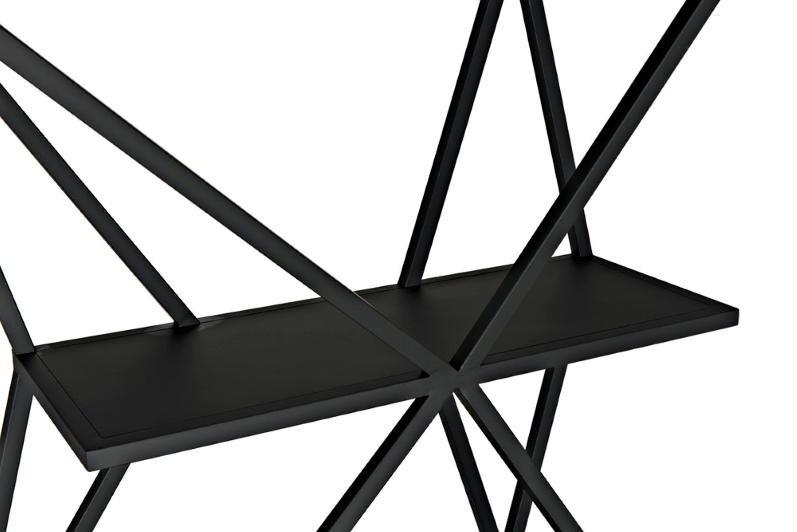 Add an industrial-modern focal point to your living room, office, or entryway with this Sutro shelf. Built from heavy-gauge iron and finished in matte black, it combines rugged durability with a clean, contemporary silhouette that complements minimalist, loft, and urban interiors. Its open design showcases books, decor, and collectibles while the sturdy frame supports everyday use.