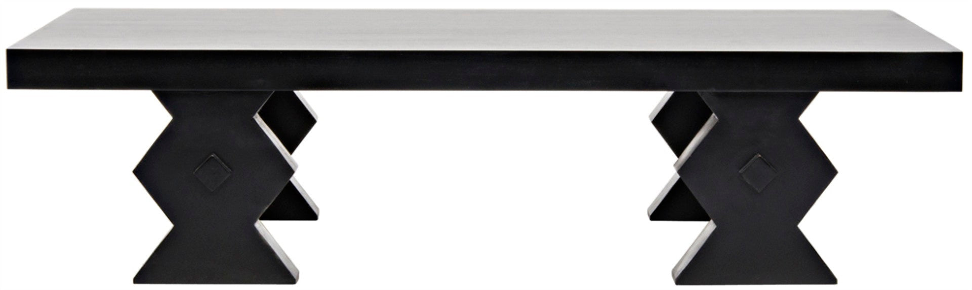 Elevate your living space with this striking mahogany coffee table, where clean contemporary lines meet artisanal detail. Hand-carved and finished in a rich hand-rubbed black, the table combines sculptural form with practical function—its uniquely angled legs add visual edge while maintaining a refined, versatile presence that complements modern and transitional interiors.