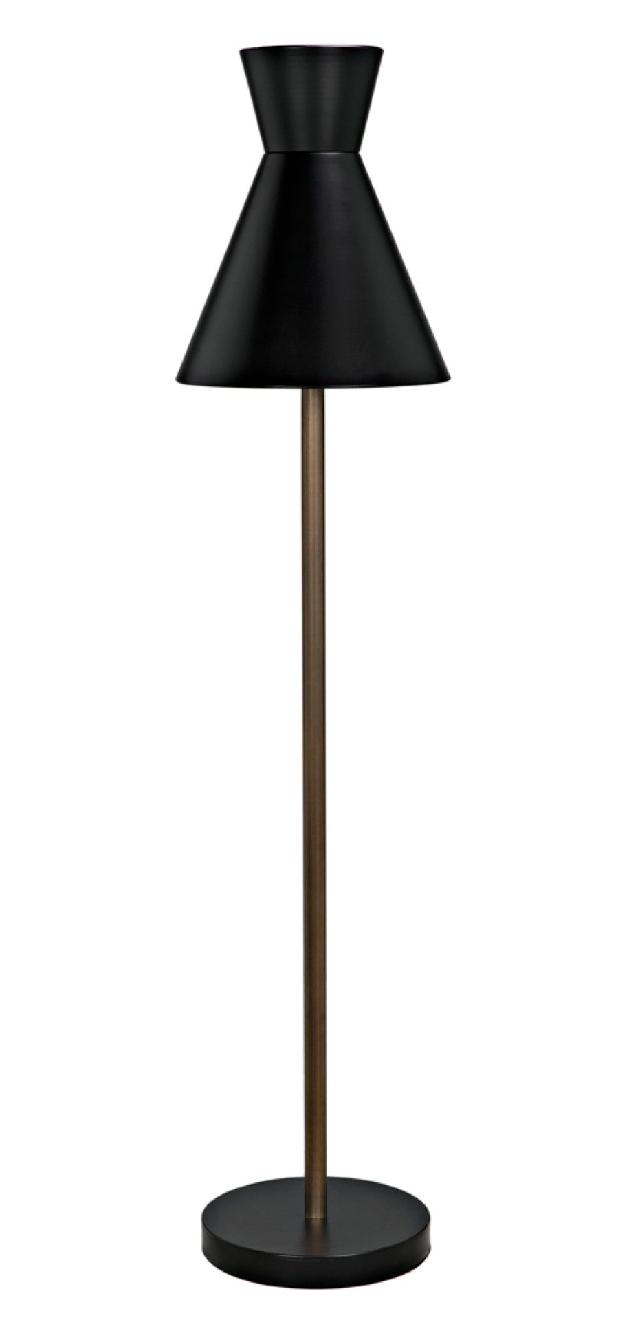 Elevate your living space with this artisan-crafted floor lamp, where modern minimalism meets vintage-inspired detail. Finished in matte black with aged brass accents, its sleek silhouette and thoughtful proportions make it a striking focal point that complements contemporary, industrial, and transitional interiors alike.
