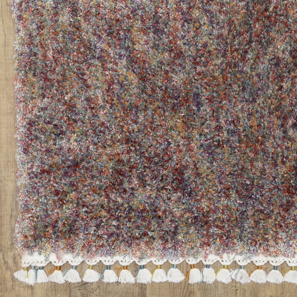 - Features an all-over multi-colored pattern finished with a fun tied tassel edge