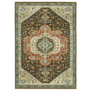 - Rug colors include shades of brown, orange, oatmeal, ivory, blues, gold, green