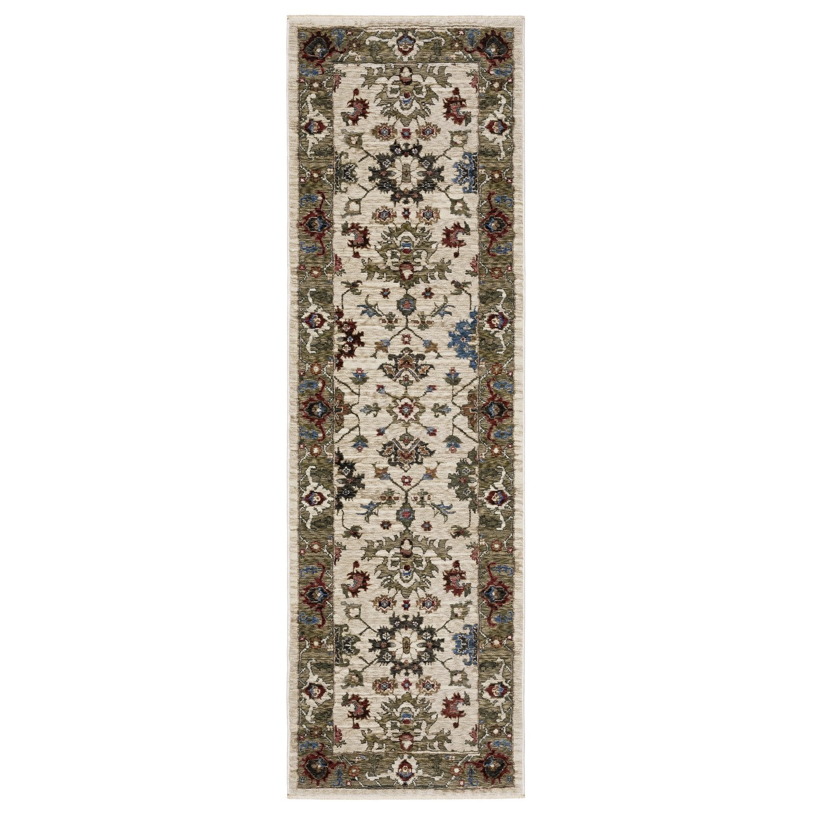 - Colors include shades of ivory, green, red, blue, orange, grey