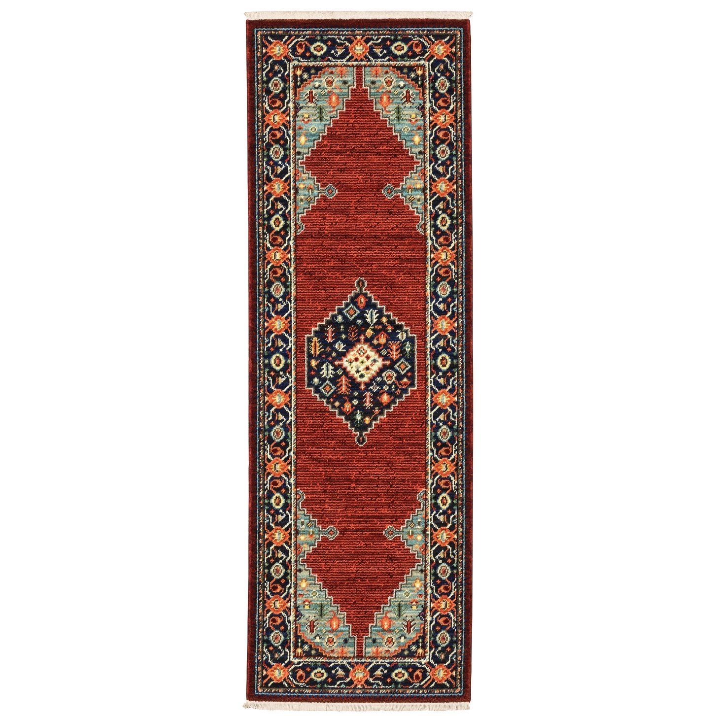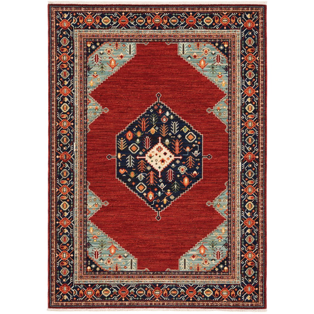 - Features an oriental, Persian inspired medallion pattern, finished with a short fringe