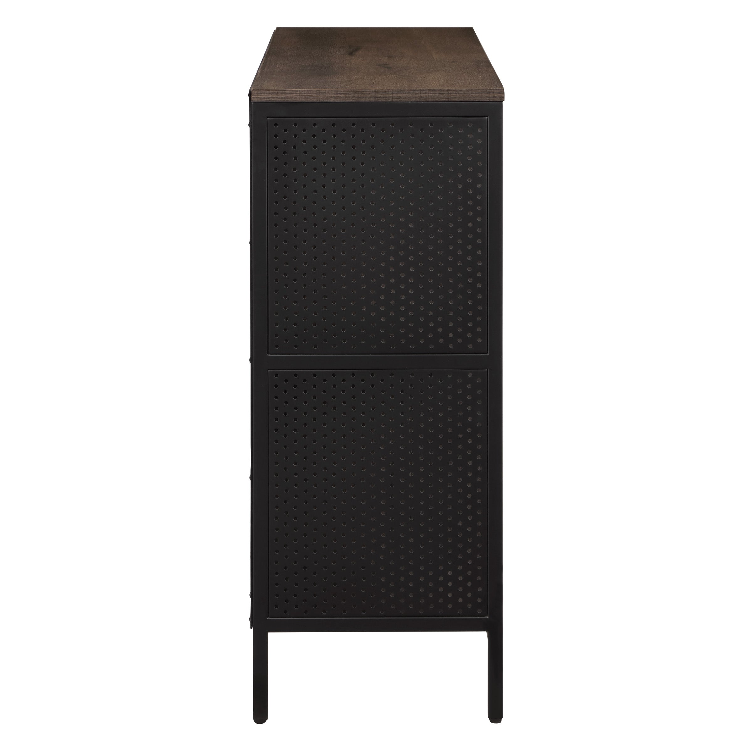 - Mixed wood and metal design adds interesting contrast