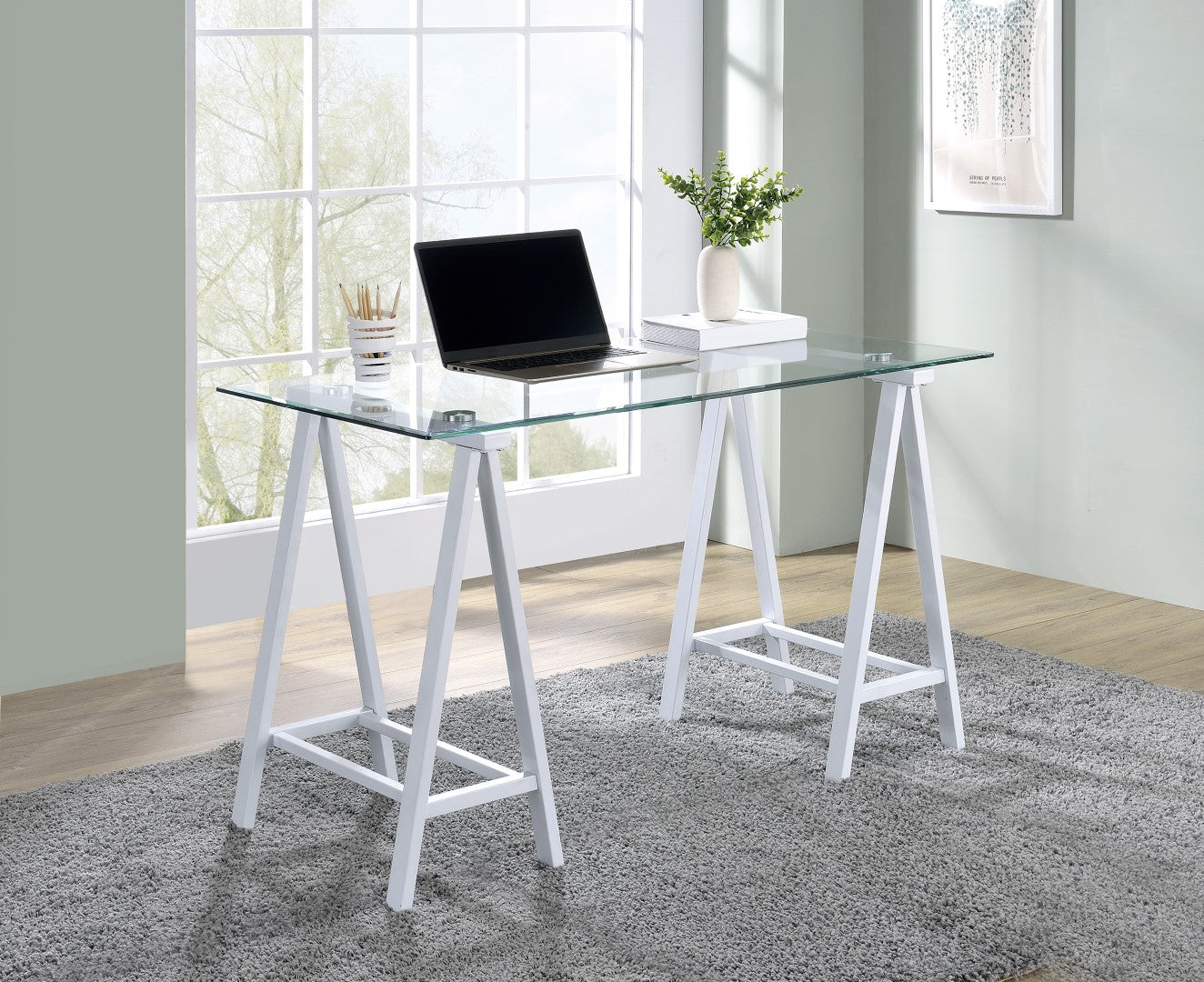 - Clear beveled 8mm tempered glass desktop