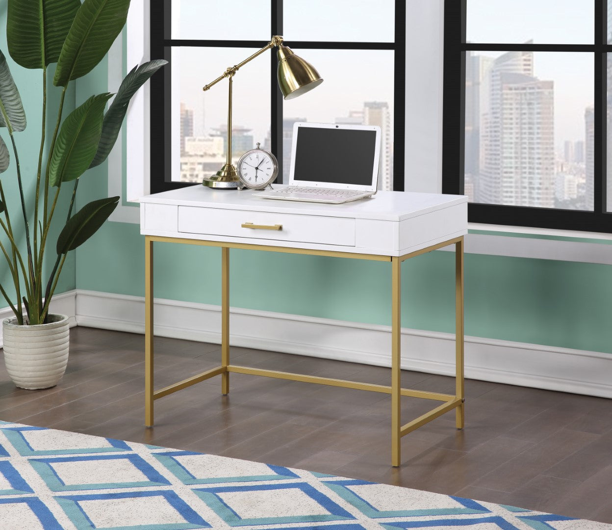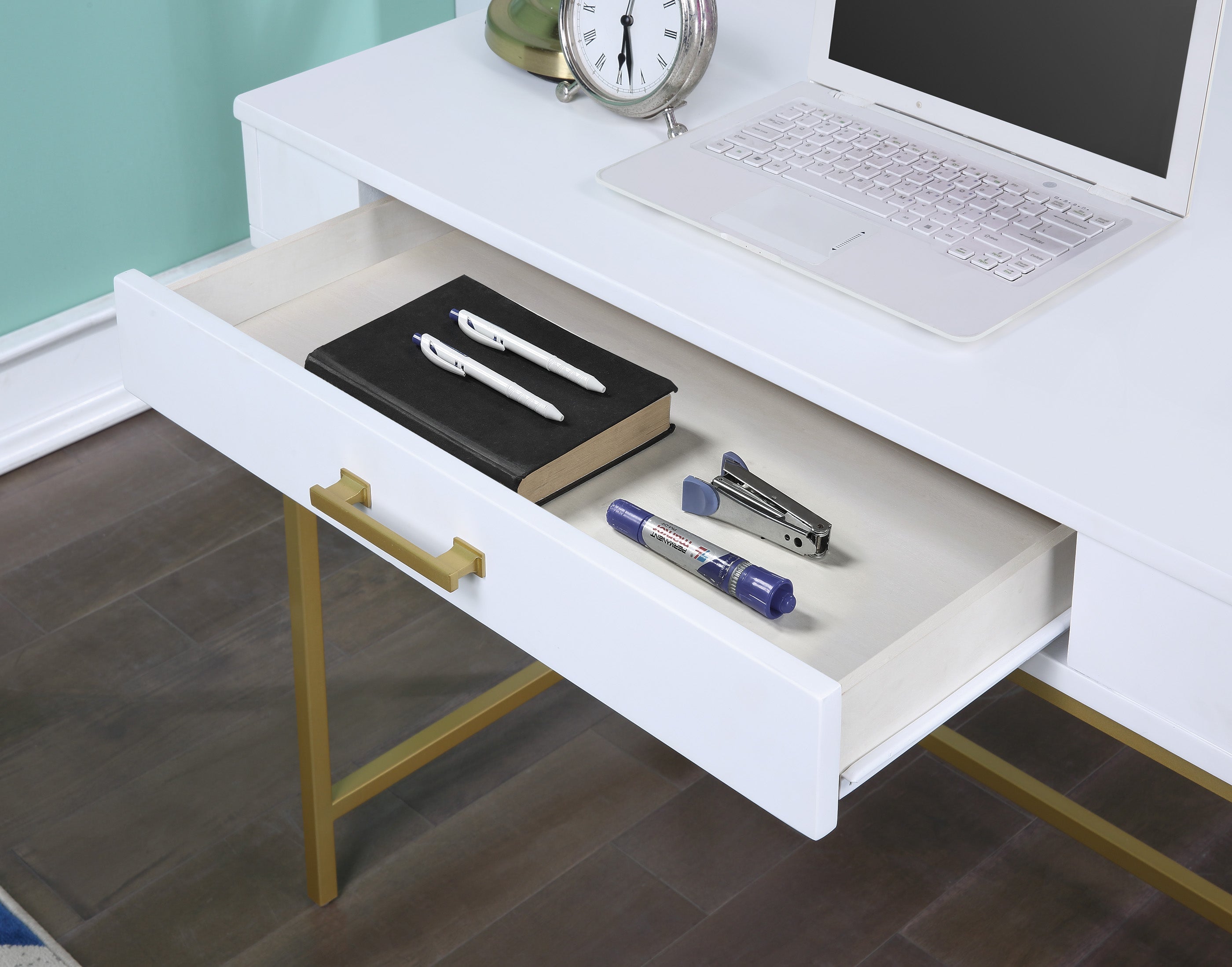 - · Desk top features a durable matte paint finish