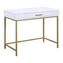 - · Powder coated gold metal legs provide a perfect color accent
