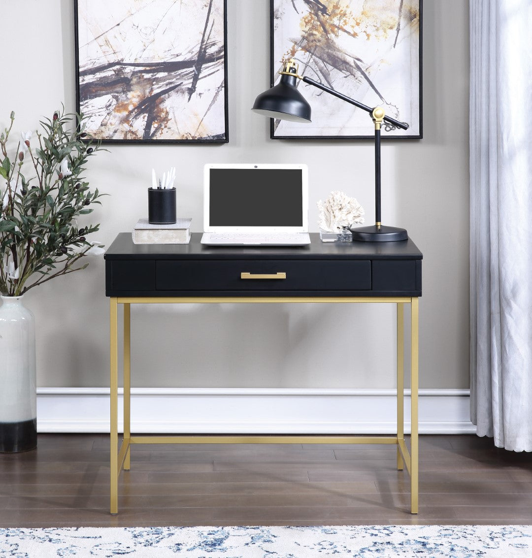 - · Available in black or white finish with the gold base