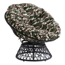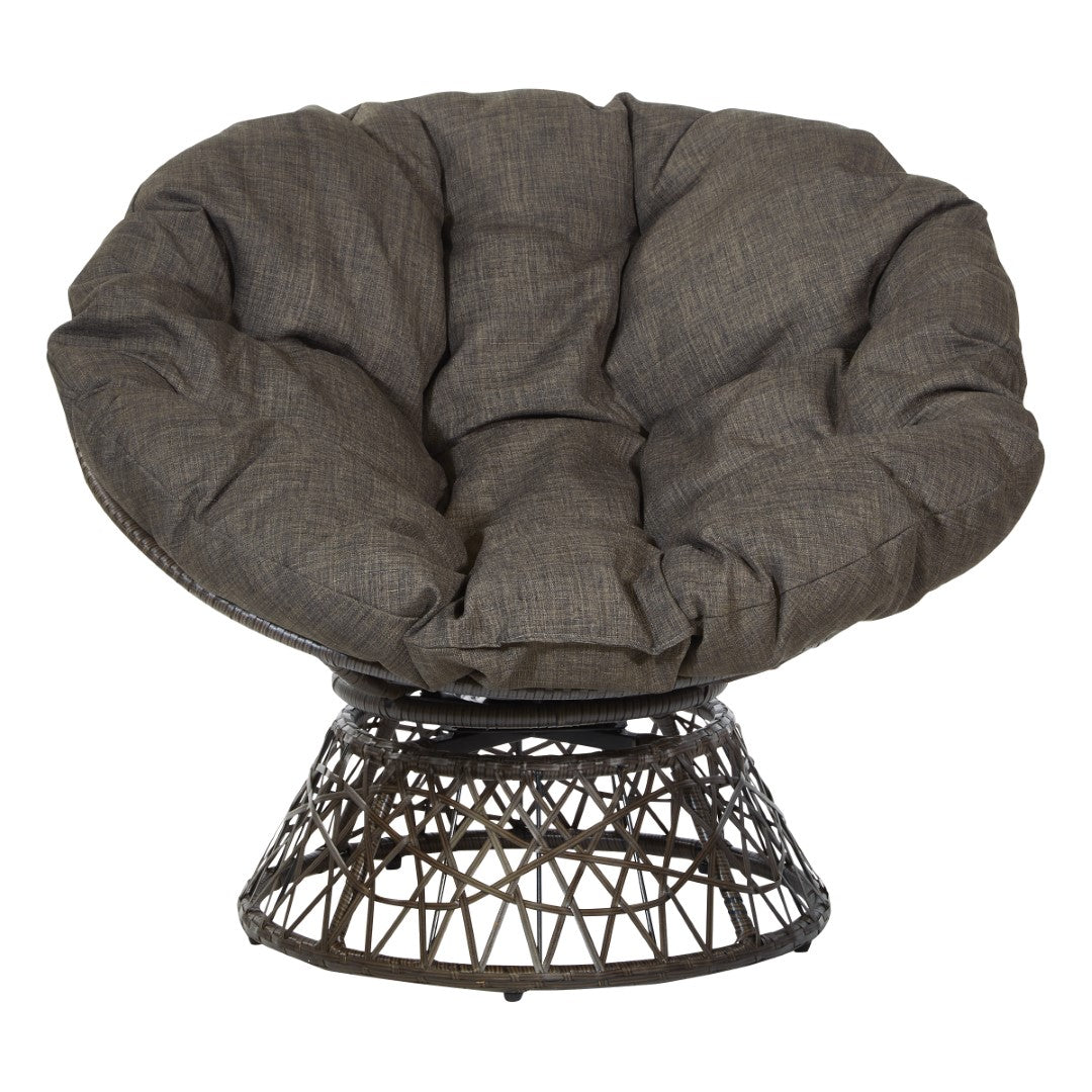 - Metal frame wrapped in a durable resin wicker