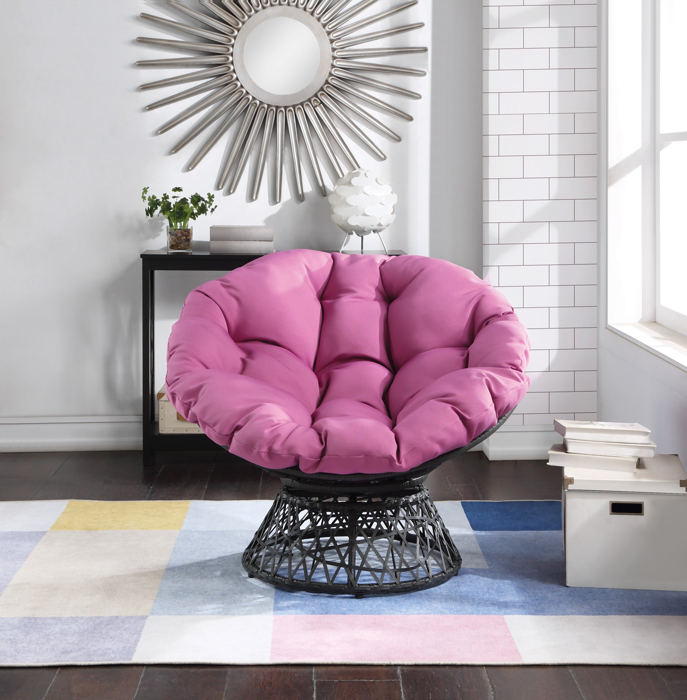 - Thick padded, button-tufted polyester cushion