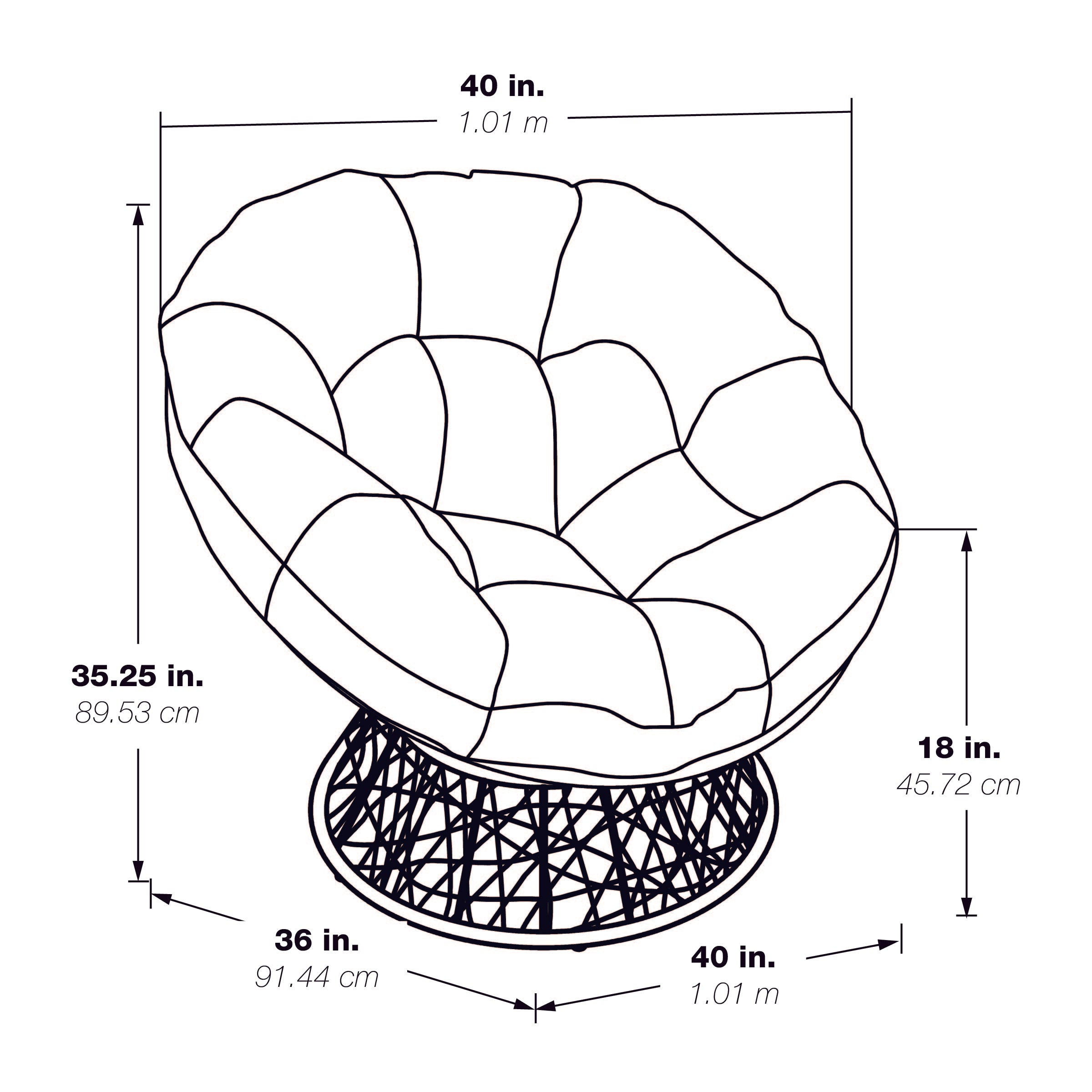 - Dimensions: 40" W x 36" D x 35.25" H