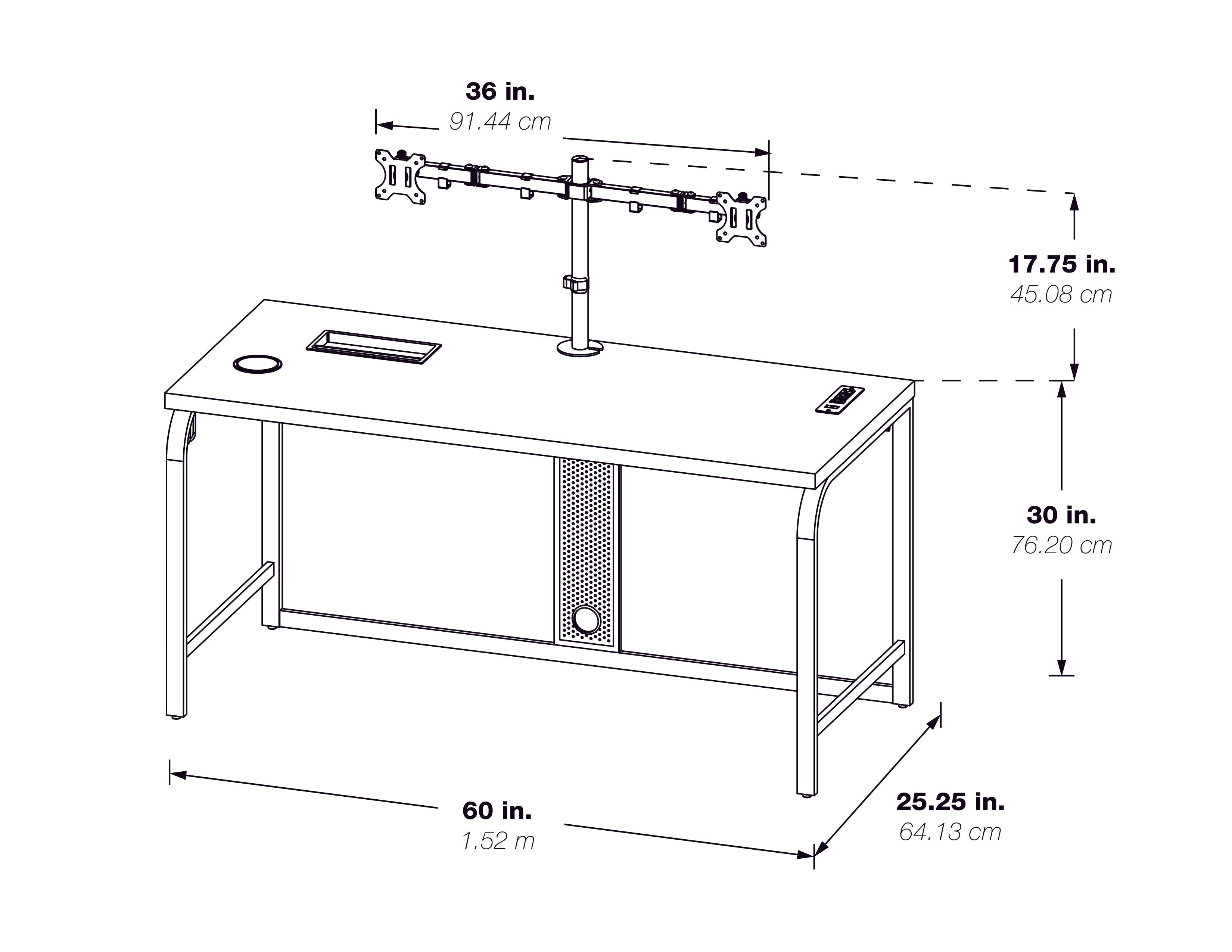 - Gaming Desk with 2-in-1 height adjustable monitor mount