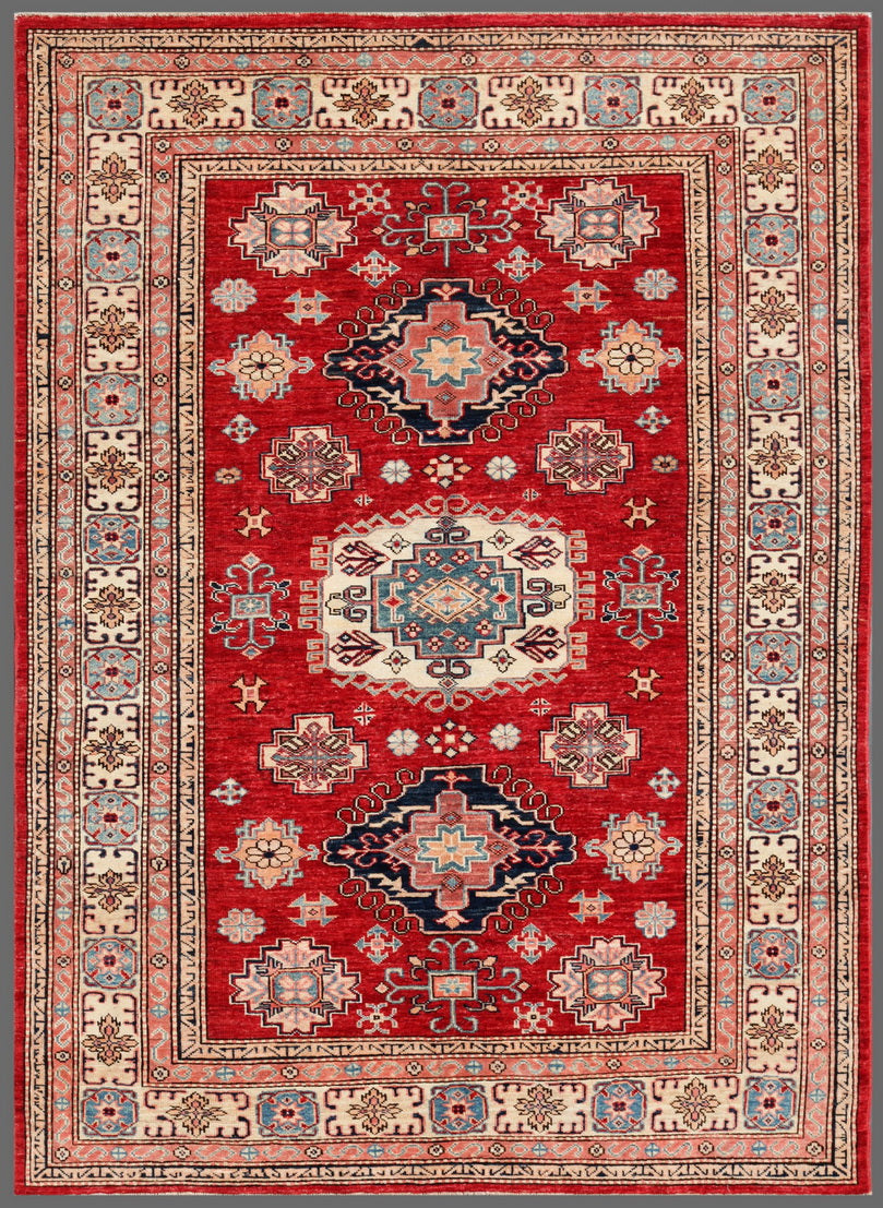 Pasargad Home Kazak Collection is inspired by antique Caucasian rugs that are made by villages and tribes of Azerbaijan. Made of hand-spun, hand-shredded high mountain lamb is wool with all natural vegetable dyes in Azerbaijan, these rugs embody a special patina and sheen unique to this region.