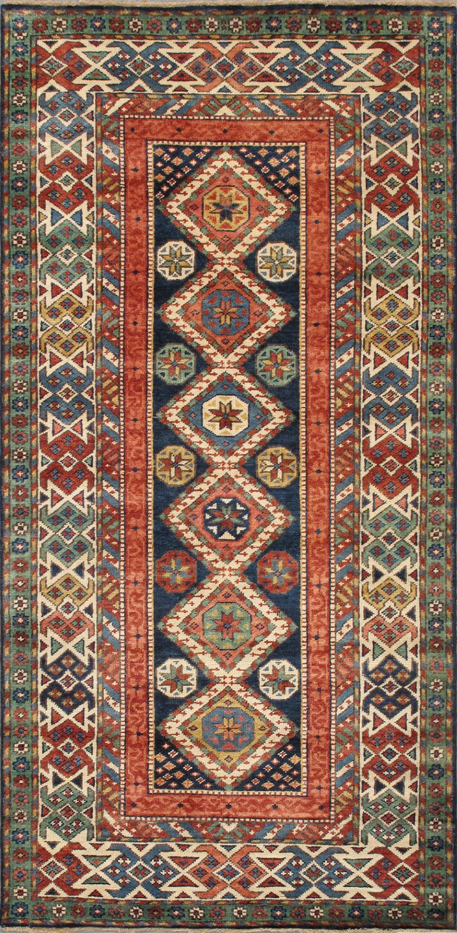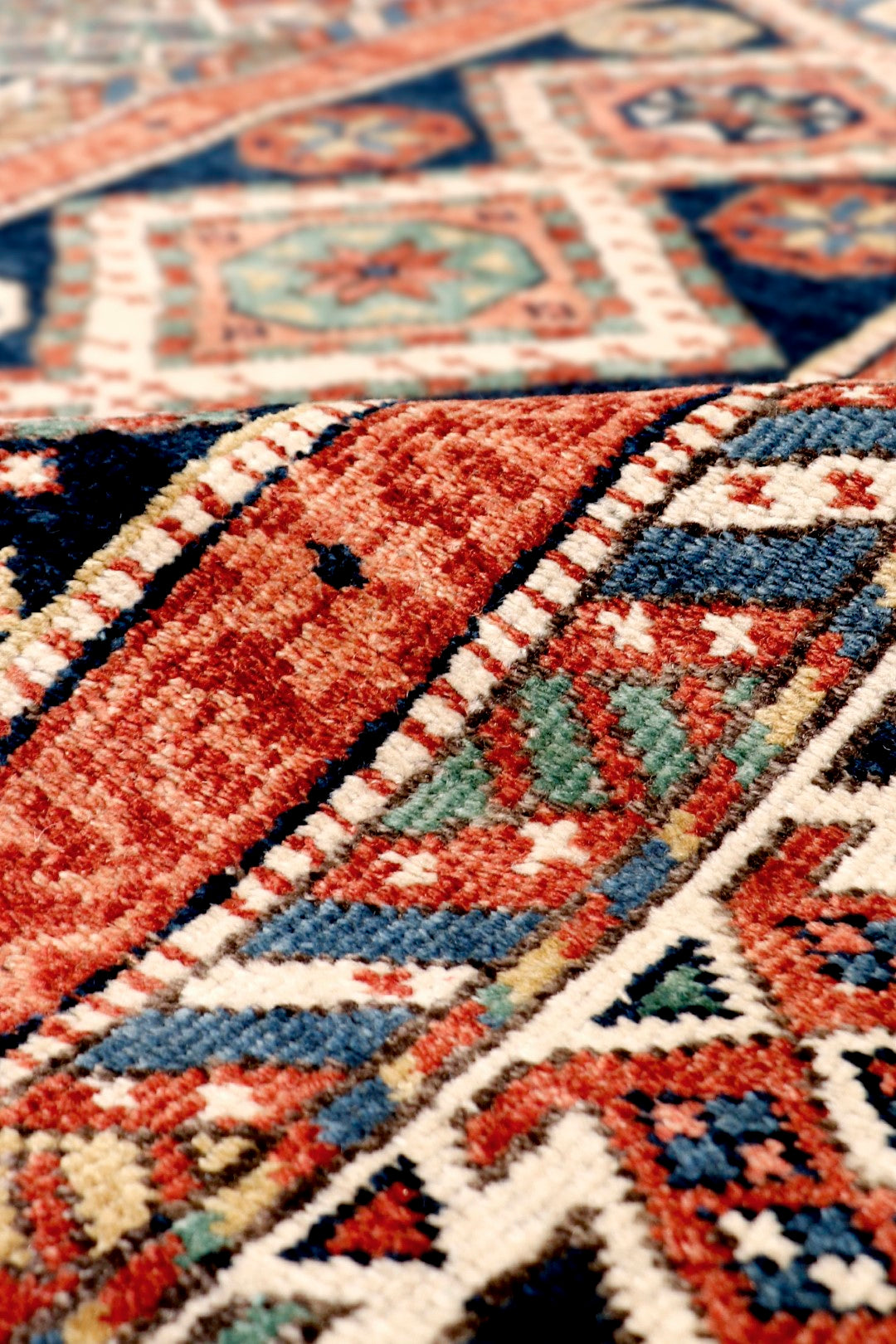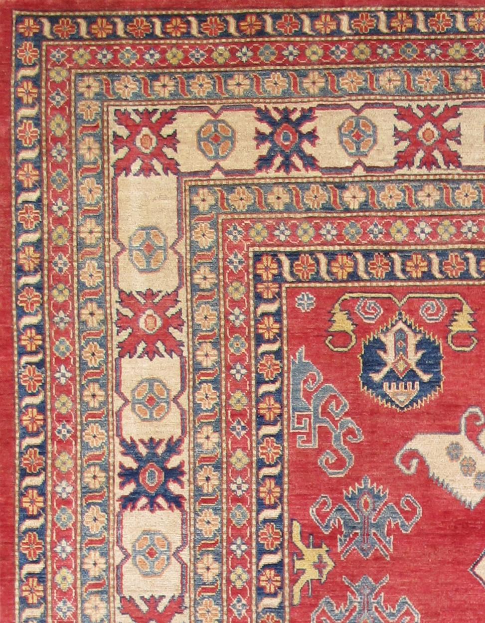 Pasargad's Kazak Collection is inspired by antique Caucasian rugs that are made by villages and tribes of Afghanistan. Made of hand-spun, hand-shredded high mountain lamb's wool with all natural vegetable dyes in Afghanistan, these rugs embody a special patina and sheen unique to this region.
