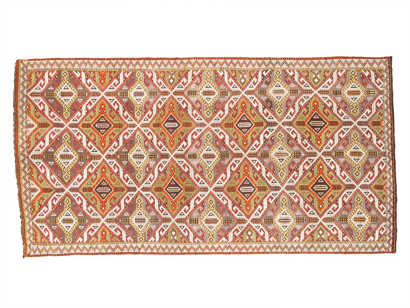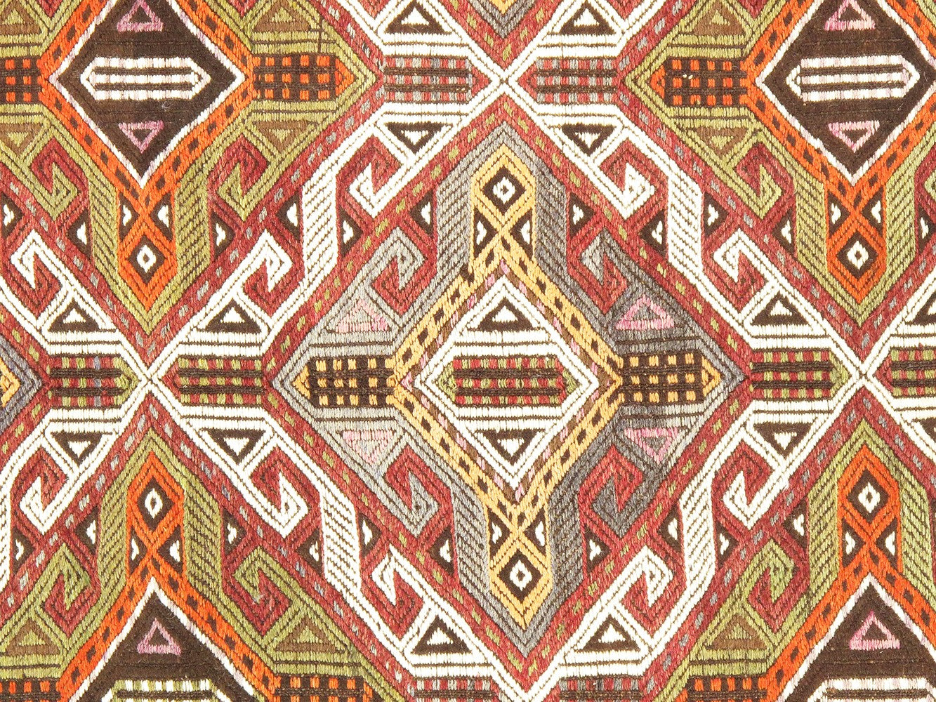 Amazing Antique Anatolian Kilim with unique pattern! truly one-of-a-kind. This flat-weave kilim rug is masterfully hand-woven of top quality wool for enduring beauty. A colorful and visionary way for a unique metamorphosis of style, color and texture. This collection complements any room looking for a fresh update. The unique trait about these thin rugs is that they're reversible.