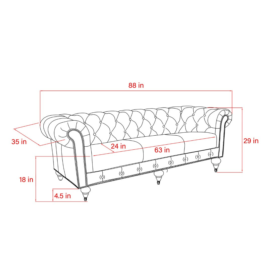 This Tufted Leather sofa adds an aura of luxury, and class to any room, and is a must have addition to any home furniture collection. Upholstered in 100% genuine leather Vintage cigar finishing, it features rolled arms, and an elegant nail head trim, while its wood frame provides durability, and a sturdy base.