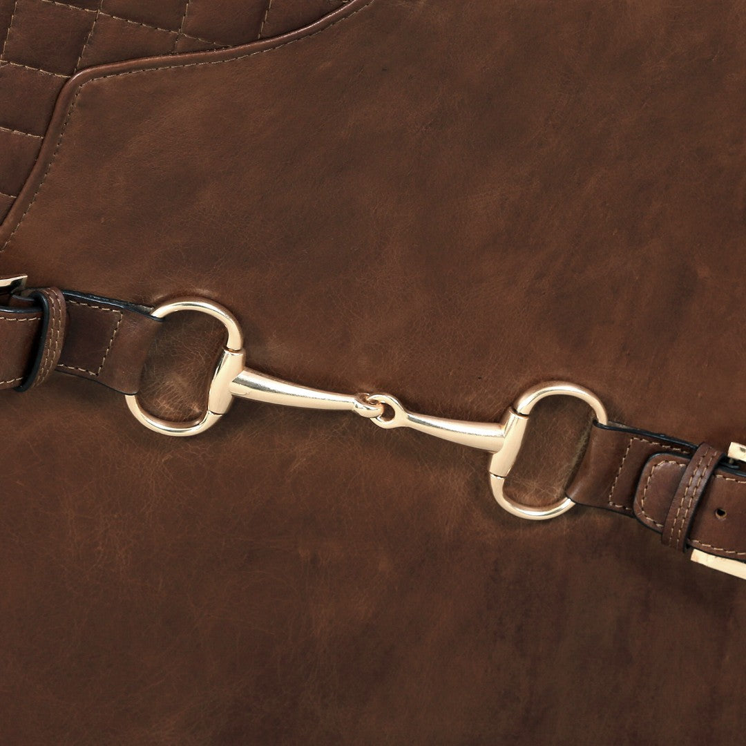 The alluring Aspen Saddle chair is a timeless piece that exudes both sophistication and comfort. Its classic design, featuring the iconic high backrest and elegant wings, is a symbol of refined taste and luxury. Crafted from high-quality leather, this chair boasts not only exquisite aesthetics but also durability and a luxurious feel. The rich Cuba Brown leather is enhanced by a quilted pattern and a gold metal accent. The leather’s natural texture and rich tones add warmth and character to any room, it seamlessly complements a variety of interior styles from traditional to contemporary, and can serve as a statement piece of a subtle accent, depending on your preference.