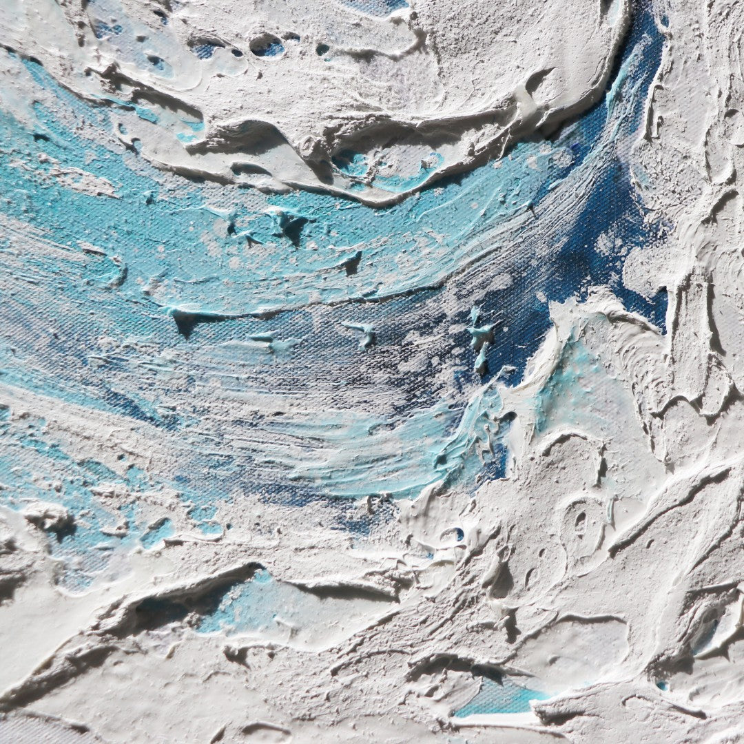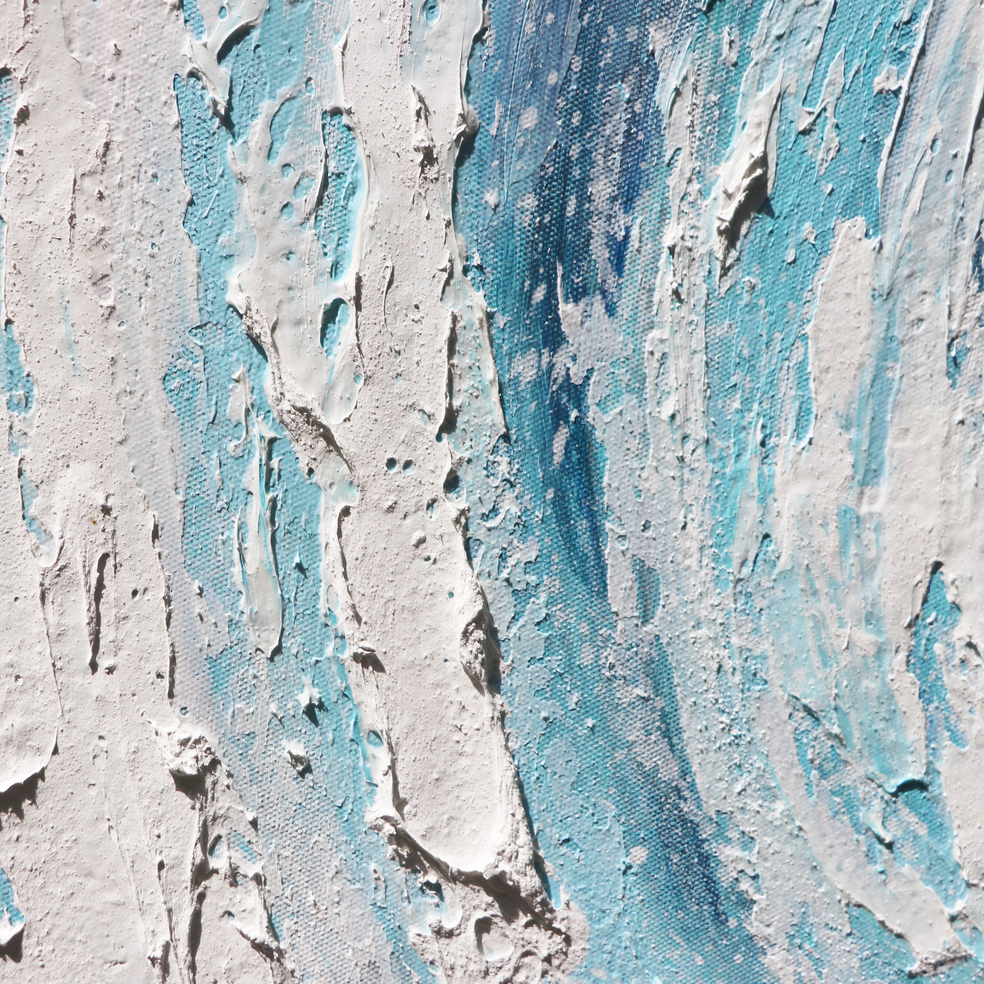 - Hand-Painted Coastal Wave Design – This striking piece is crafted with expressive brushwork and textured oil paint to capture the powerful motion of ocean waves in vivid blue and white tones.