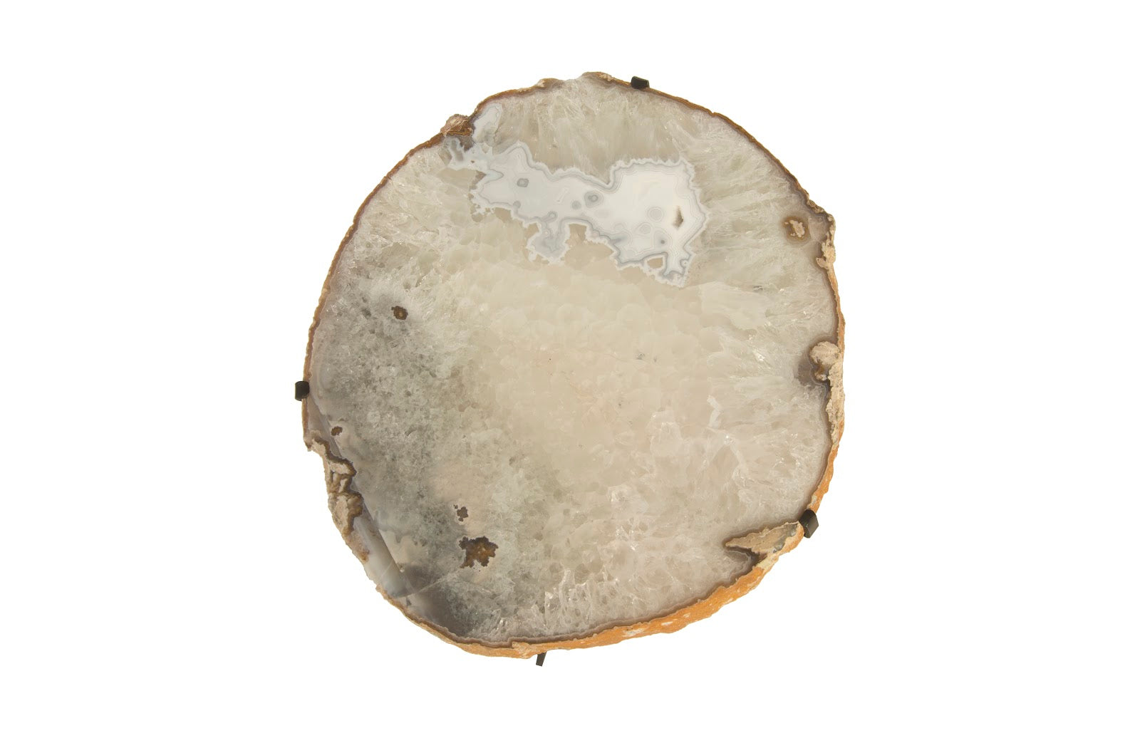 The Agate Side Table comes in many variations. The profile doesn't change but the personality of the tabletop does, as the assorted stone discs carry the unique veining inherent in each slice. Agate is characterized by its fine grain and bright color. It is most commonly found in volcanic rocks or ancient lavas where silica has melted and deposited in layers on the walls. We prize the biggest pieces and painstakingly slice them to highlight the unparalleled beauty of each piece, this stone side table an example. Each of these reflects the ethos that Phillips Collection personifies: modern organic.