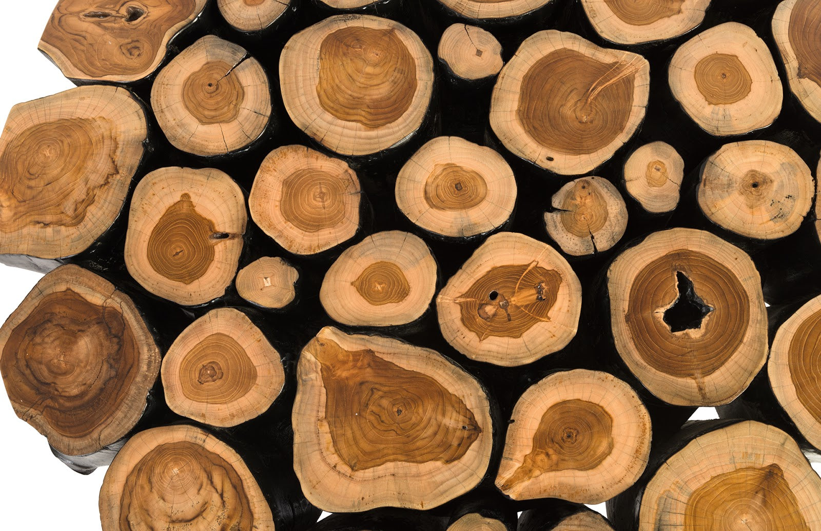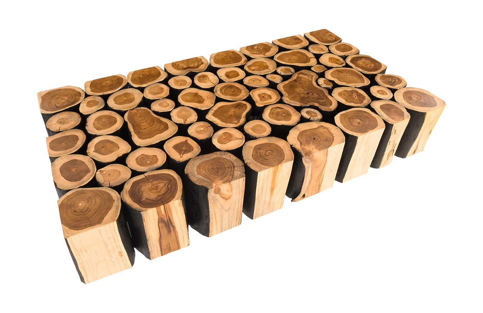 We at Phillips Collection are known for our furnishings in personable chamcha wood, a golden acacia that we responsibly source from the jungles of Asia. The Boscage Round Coffee Table contains a collection of pieces we’ve rescued from being one of nature’s finest castaways by making them into an elemental design statement. Several design distinctions of note on this wood coffee table are the natural graining on the surfaces, the textural beauty of the rings on the tops of the wood slices that illustrate the life of the tree, and the burnt edges on some of the pieces we’ve joined together to create this masterpiece. The coffee table reflects the ethos that Phillips Collection personifies: modern organic. We offer the Boscage in other shapes and configurations.