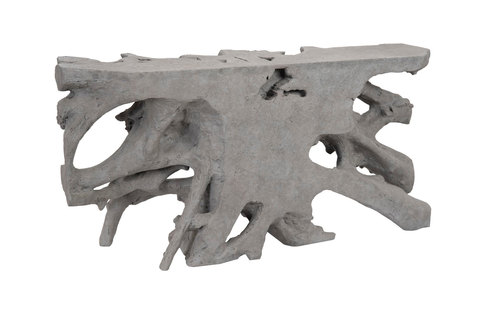 The Cast Naturals Collection highlights our skills at taking an innovative material and making it feel as if it sprang from nature. The Cast Root Charcoal Stone Console Table is made of composite that has been molded to look like a piece of harvested wood it took nature eons to create, then finished in charcoal stone. The advantage of having a console table made from this durable material is that it will long outlast its natural counterparts pulled from the forest floor. This gray console table is the perfect representation of the Phillips Collection ethos: modern organic. We have Cast Root products in a number of configurations and finishes.