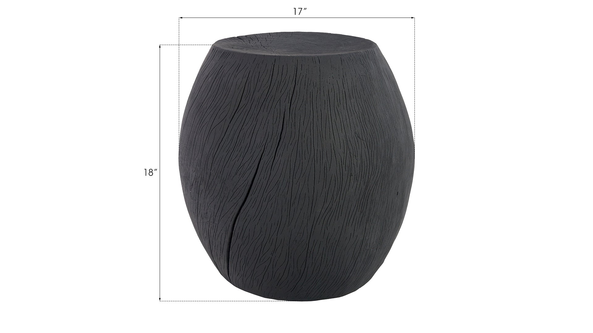 Cast from a burnt wood stool, these resin stools have all of the texture of burnt wood without the mess of ash! Finished in a matte black color, the Charred stools have the look and feel of real burnt wood.