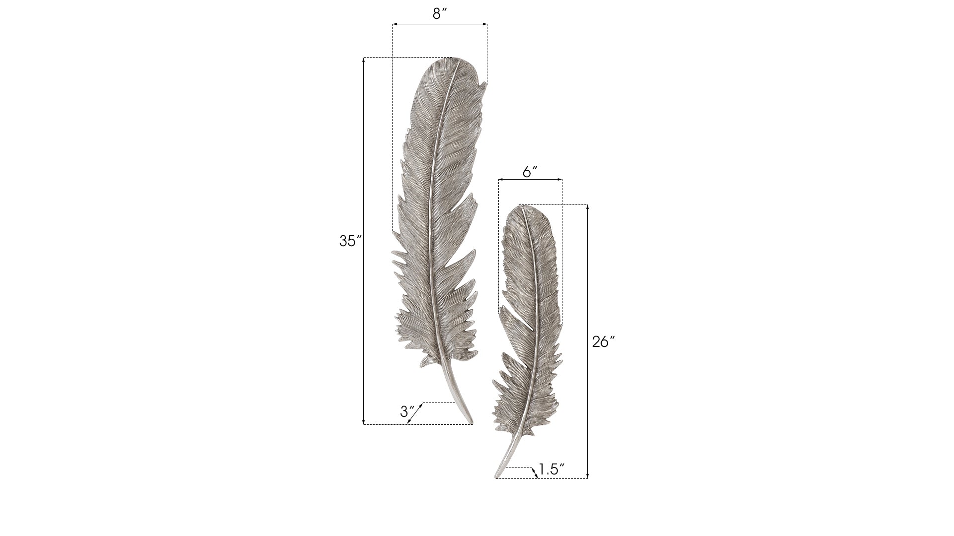Bringing nature indoors is one of the elemental moves we are adept at making when we are designing our furnishings. With the asymmetrical shapes that emulate real bird feathers that have been thoroughly preened, our Feathers Small Gold Wall Art Set is made of composite in a luminous gold leaf finish. Arching toward each other, the decorative wall sculptures also vary slightly in size to create a textural installation that will bring beauty to any room. We also offer the gold set in a large size, and we have both the small and large sets in silver. Each of these sets reflects the ethos that Phillips Collection personifies: modern organic.