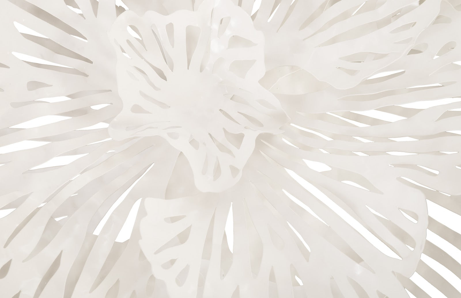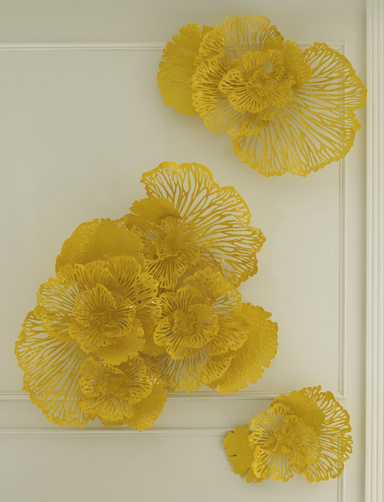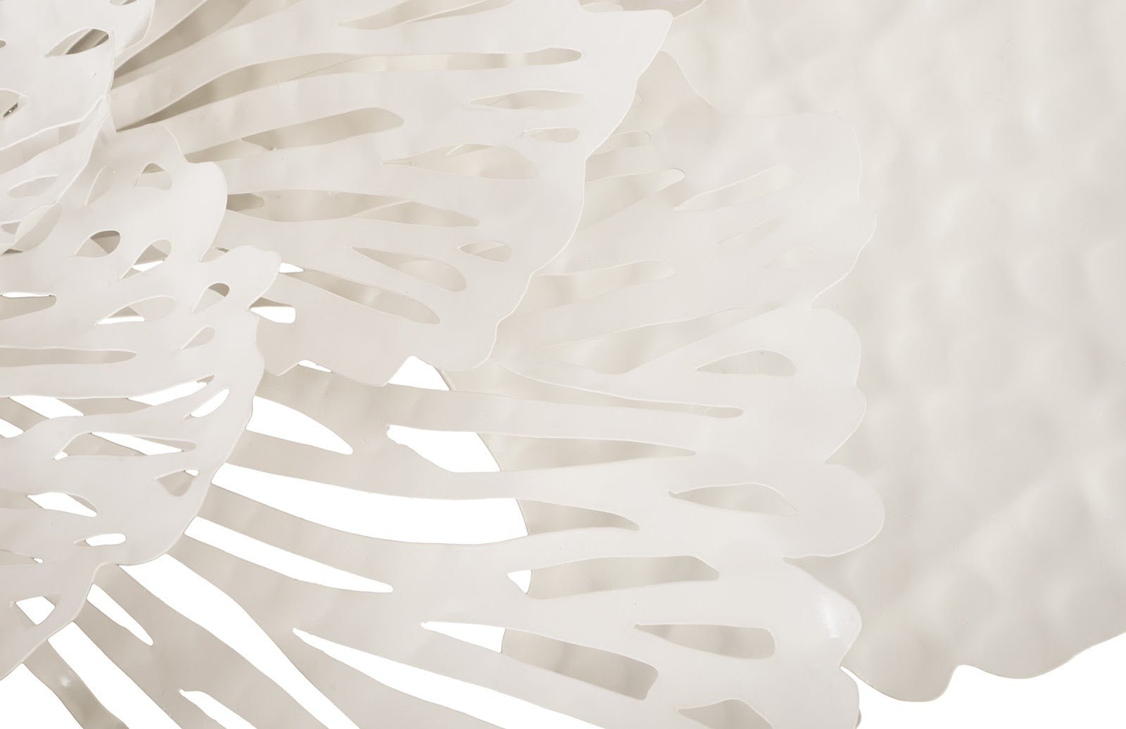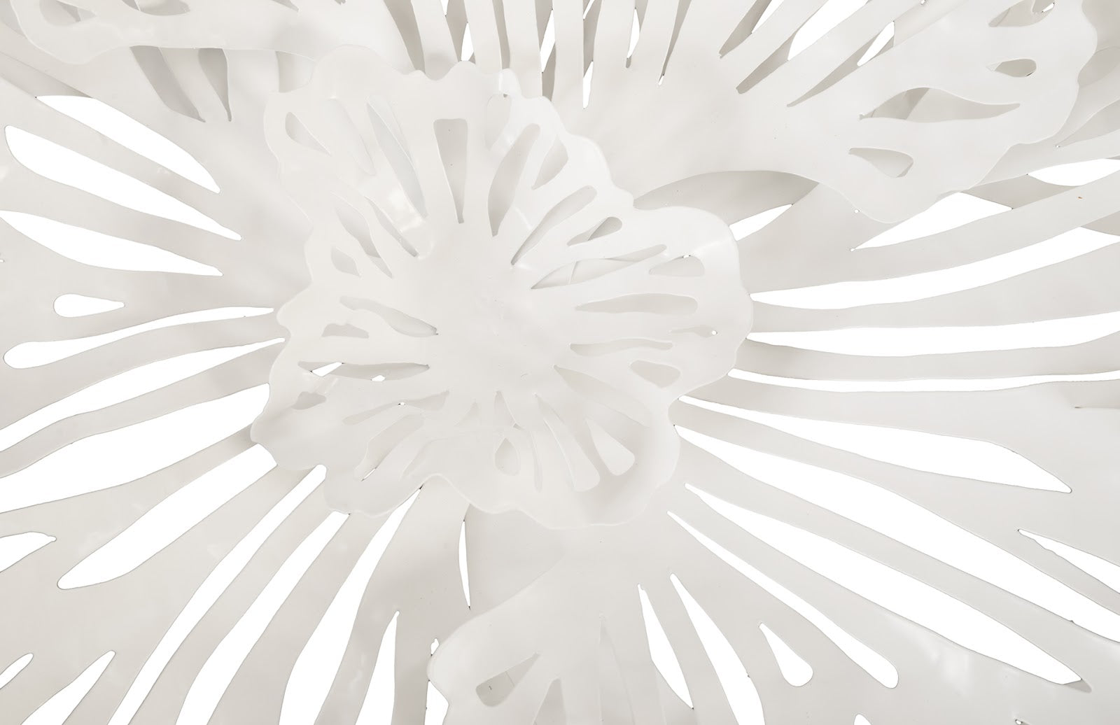 The lacy artistry of the Small Blue Flower Wall Art will make a dramatic statement on its own; arrange it with the medium and large sizes in the same beautiful blue, and you bring a room a massive dose of loveliness. The filigree effect of the profile, which is cut from metal and powder coated for a rich, lasting finish, will throw textural shadows on surrounding surfaces that will evolve with the movement of the sun. If blue is not the perfect color for a space, we offer the floral wall sculptures in copper, white, yellow, red, and ivory hues. Each of the offerings in this collection reflects the ethos that Phillips Collection personifies: modern organic.