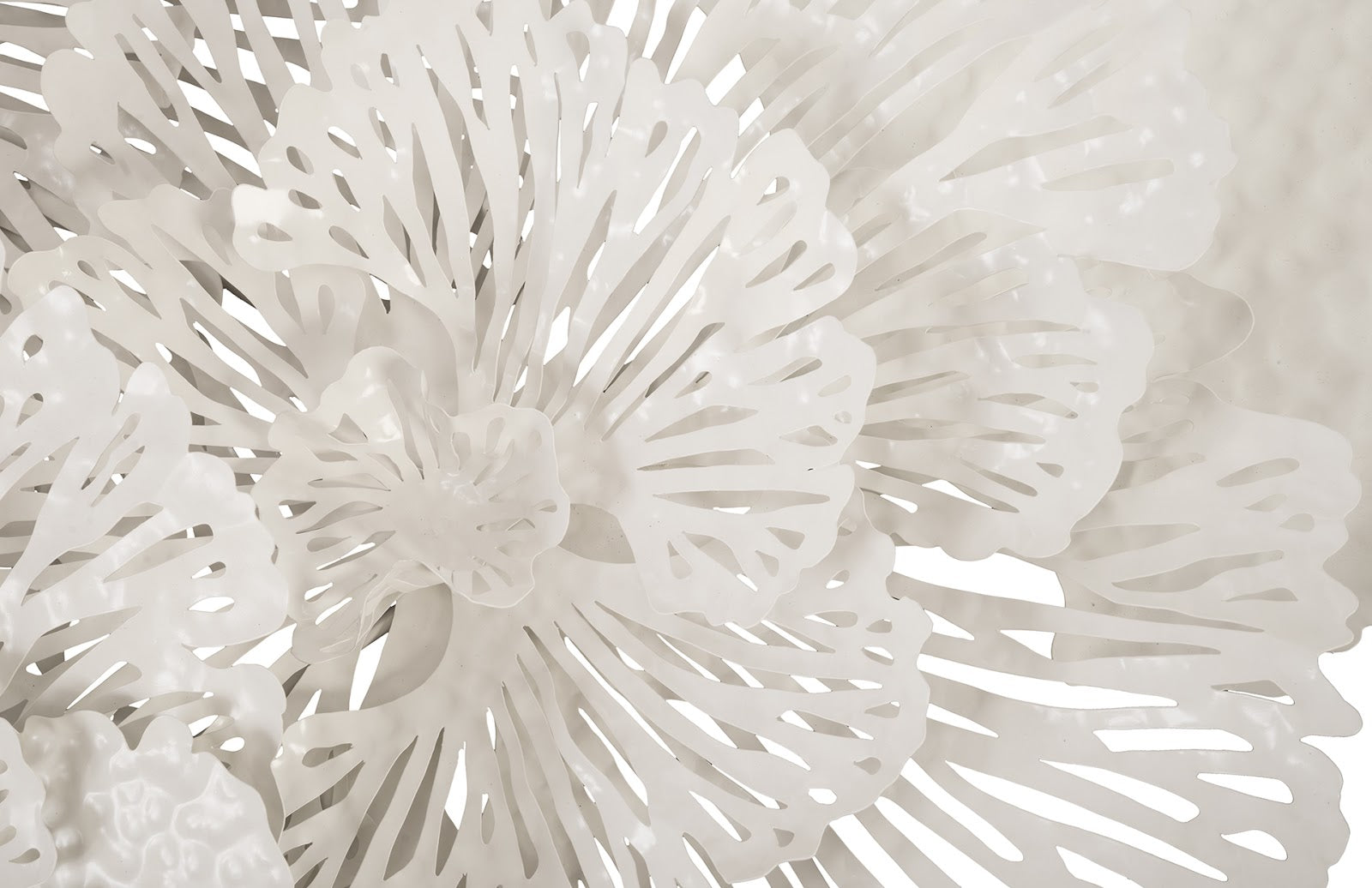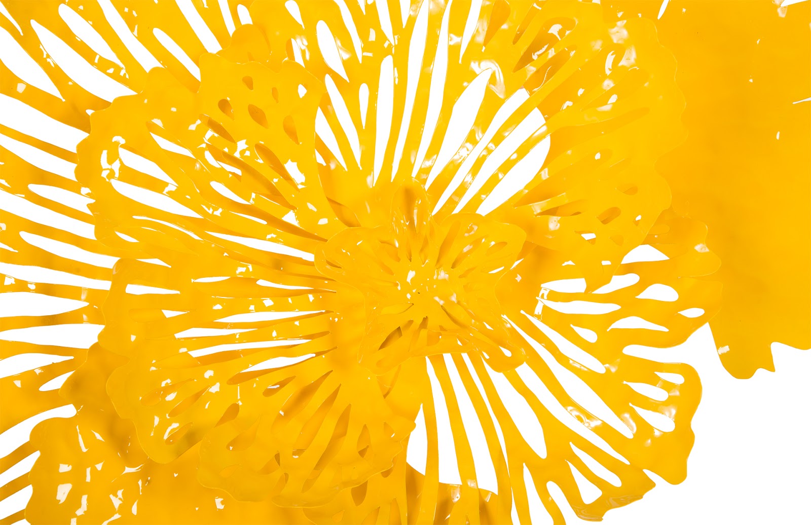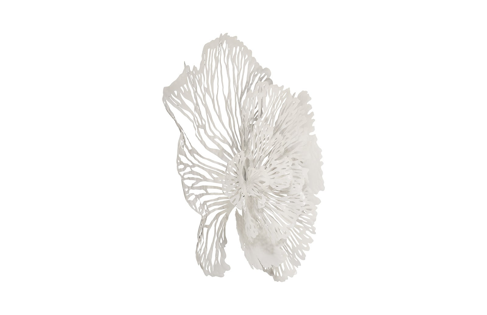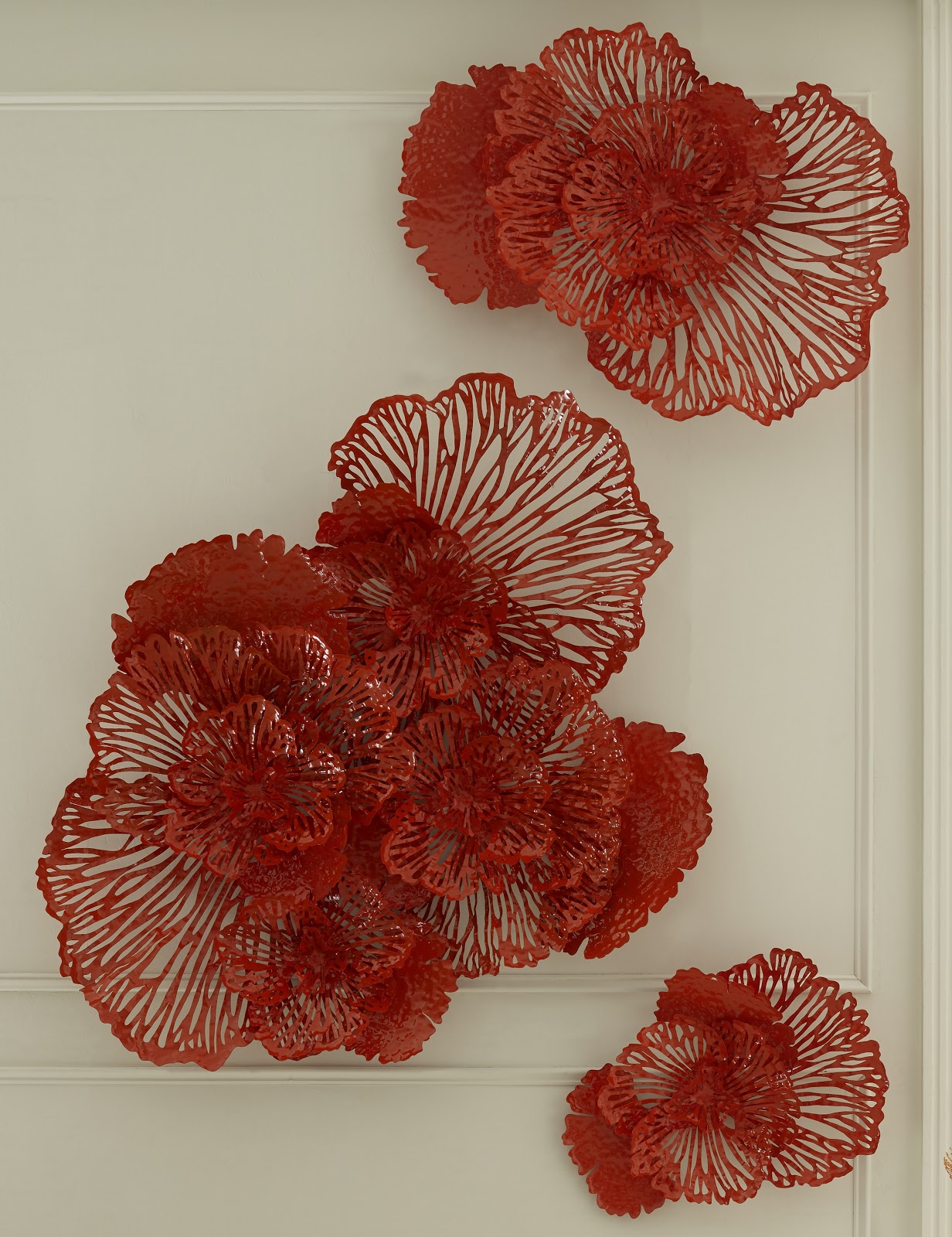 The lacy artistry of the Small Blue Flower Wall Art will make a dramatic statement on its own; arrange it with the medium and large sizes in the same beautiful blue, and you bring a room a massive dose of loveliness. The filigree effect of the profile, which is cut from metal and powder coated for a rich, lasting finish, will throw textural shadows on surrounding surfaces that will evolve with the movement of the sun. If blue is not the perfect color for a space, we offer the floral wall sculptures in copper, white, yellow, red, and ivory hues. Each of the offerings in this collection reflects the ethos that Phillips Collection personifies: modern organic.
