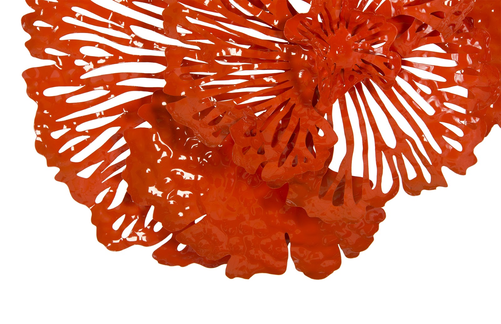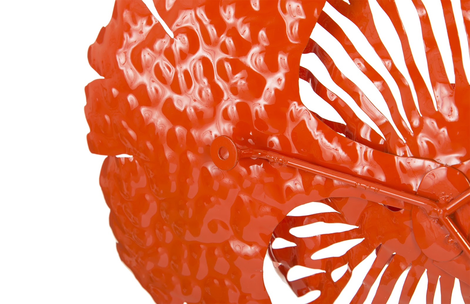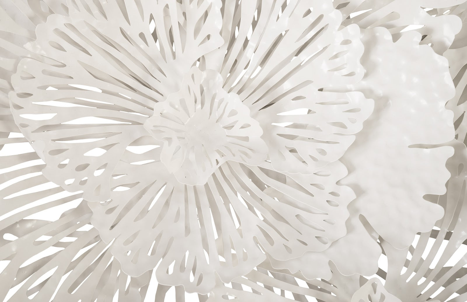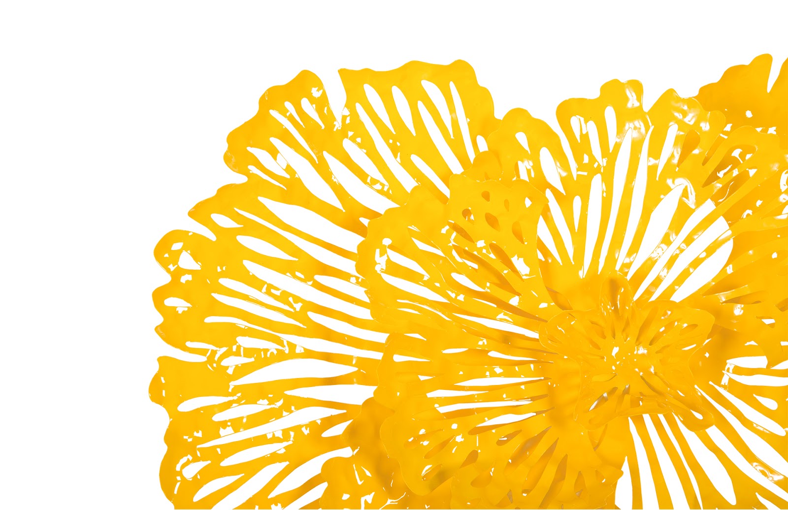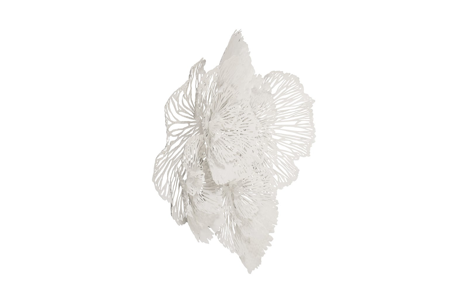 The lacy artistry of the Small Blue Flower Wall Art will make a dramatic statement on its own; arrange it with the medium and large sizes in the same beautiful blue, and you bring a room a massive dose of loveliness. The filigree effect of the profile, which is cut from metal and powder coated for a rich, lasting finish, will throw textural shadows on surrounding surfaces that will evolve with the movement of the sun. If blue is not the perfect color for a space, we offer the floral wall sculptures in copper, white, yellow, red, and ivory hues. Each of the offerings in this collection reflects the ethos that Phillips Collection personifies: modern organic.