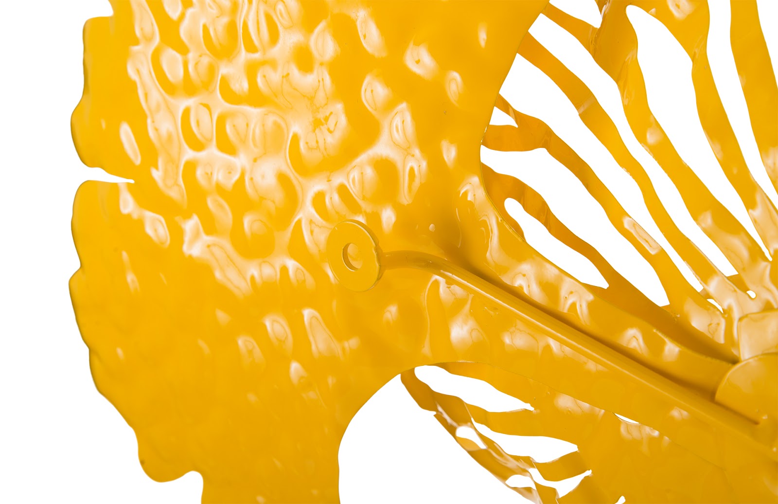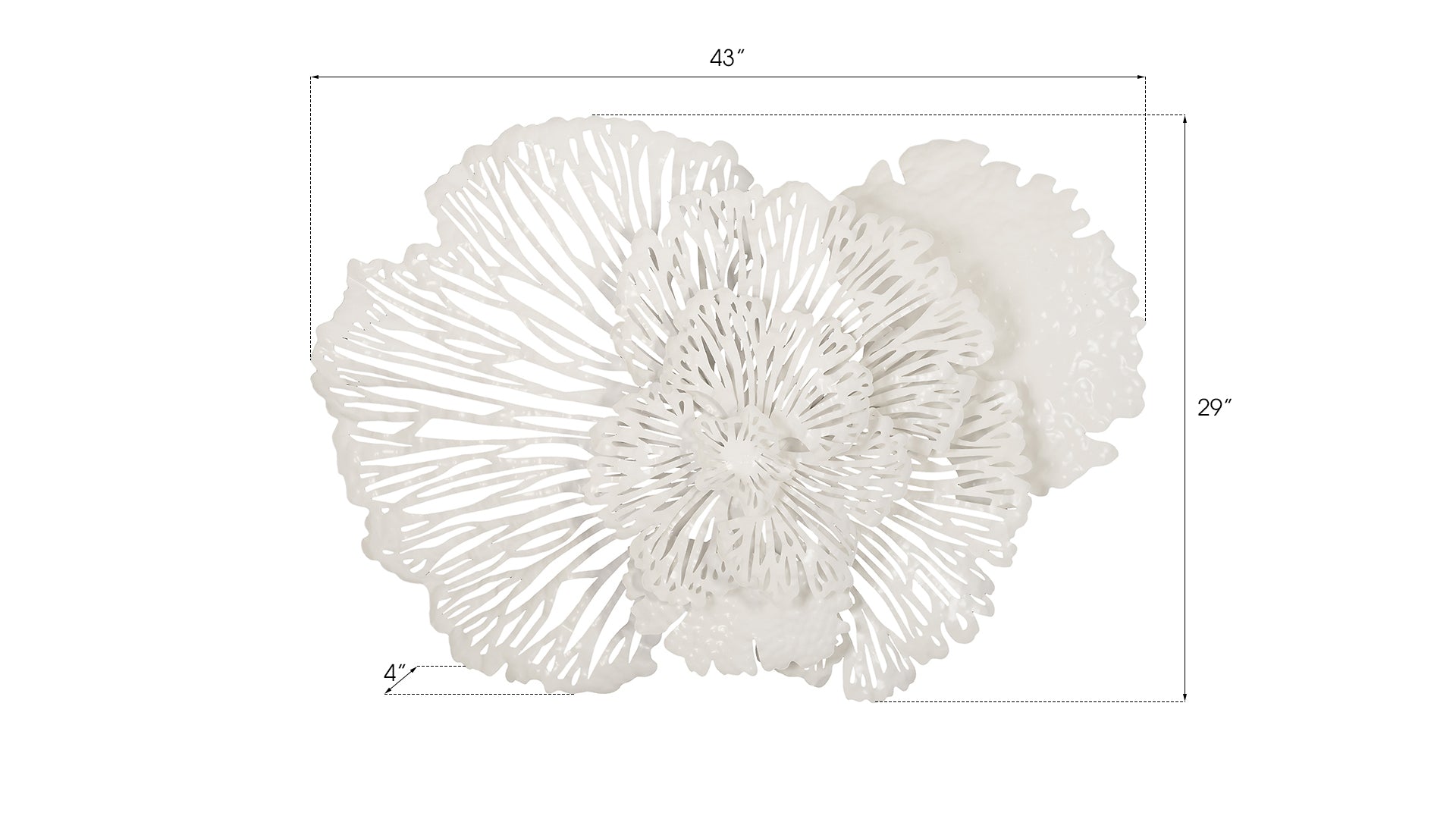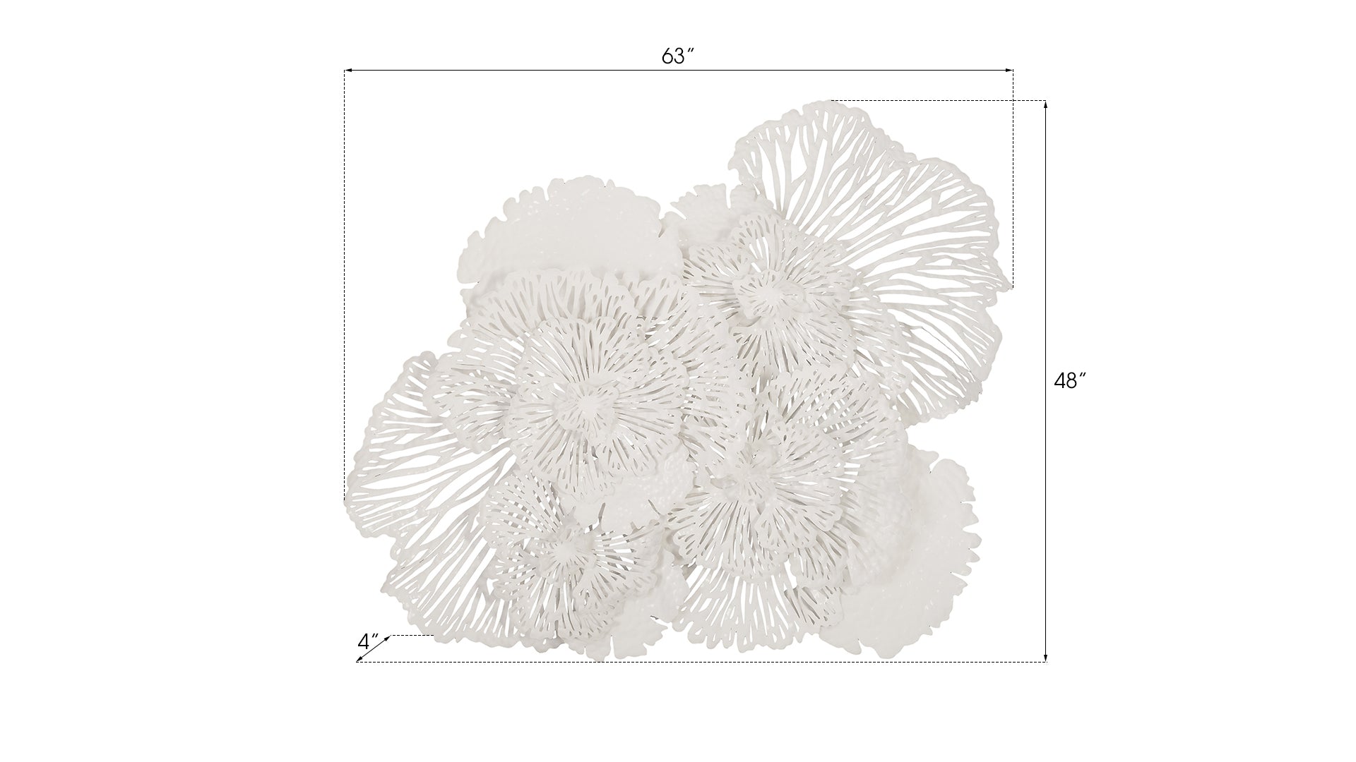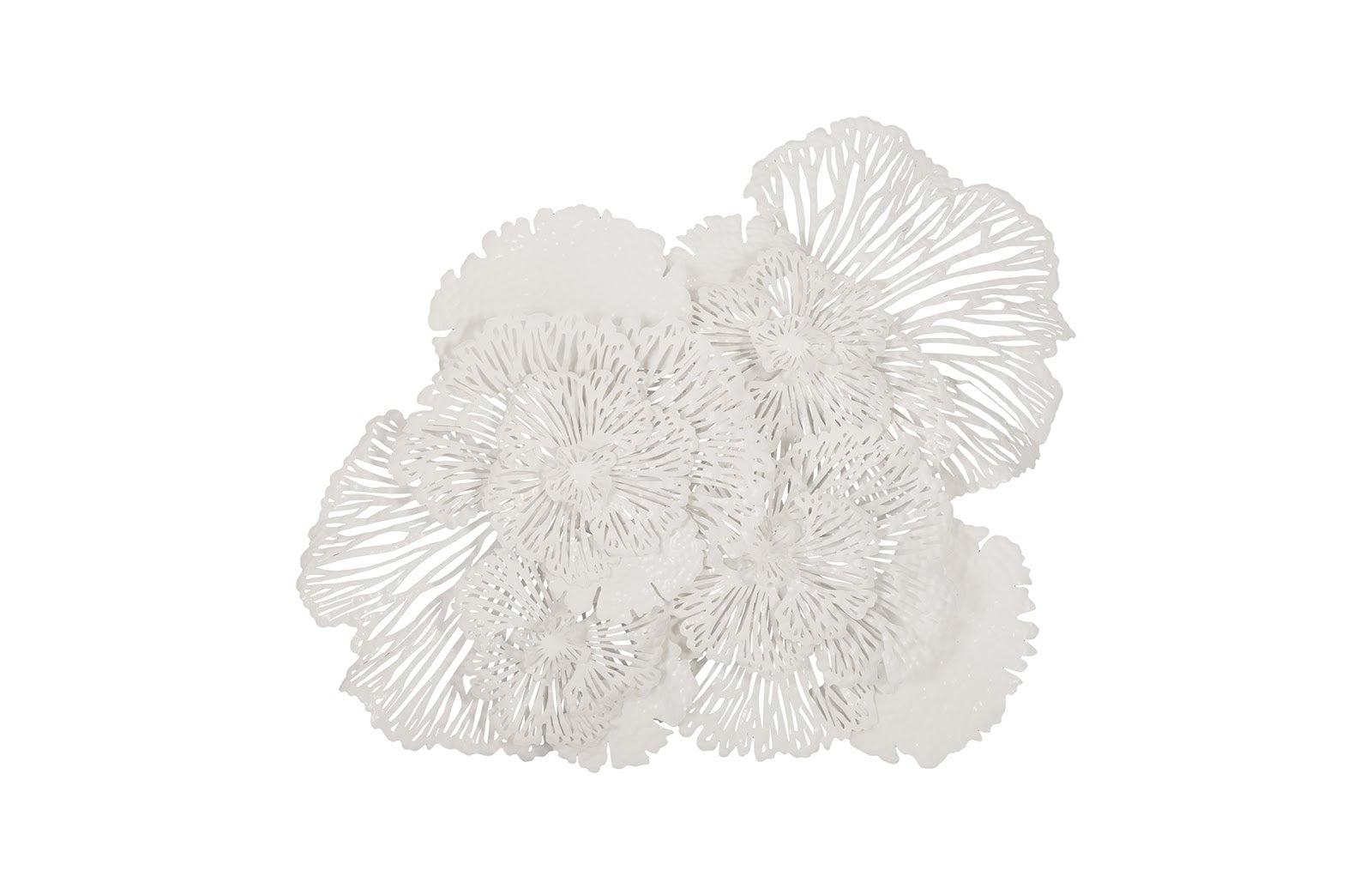The lacy artistry of the Small Blue Flower Wall Art will make a dramatic statement on its own; arrange it with the medium and large sizes in the same beautiful blue, and you bring a room a massive dose of loveliness. The filigree effect of the profile, which is cut from metal and powder coated for a rich, lasting finish, will throw textural shadows on surrounding surfaces that will evolve with the movement of the sun. If blue is not the perfect color for a space, we offer the floral wall sculptures in copper, white, yellow, red, and ivory hues. Each of the offerings in this collection reflects the ethos that Phillips Collection personifies: modern organic.