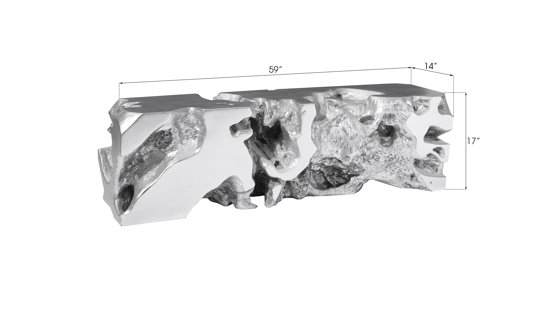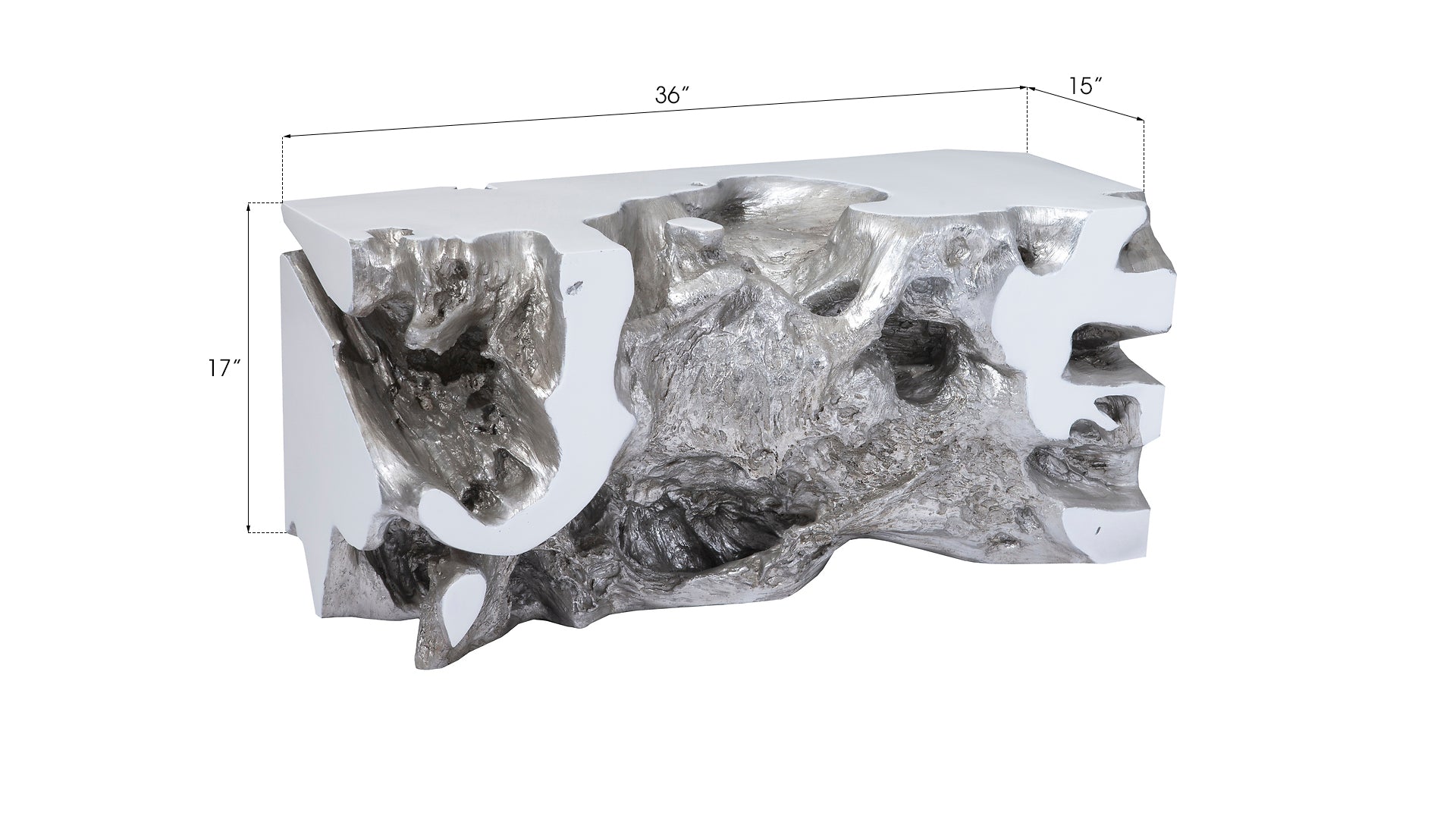 When we spot a shape that blows us away, the designers at Phillips Collection are not shy about bringing a bit of bling to elemental symbols we see in the woods. Case in point is our Freeform Silver Bench, which is made of composite in a luminous silver leaf finish. Cast from one of our favorite Origins pieces of wood, this tree-trunk bench personifies our ethos of modern organic. By treating the surface of this tree root bench to such a brilliant finish, we’ve created a chic piece for contemporary interiors. Just imagine how perfectly it will fit into the décor of a modern apartment or a sleek coastal condo! We also offer the table in several sizes and in a number of finishes that are equally stunning.