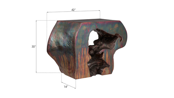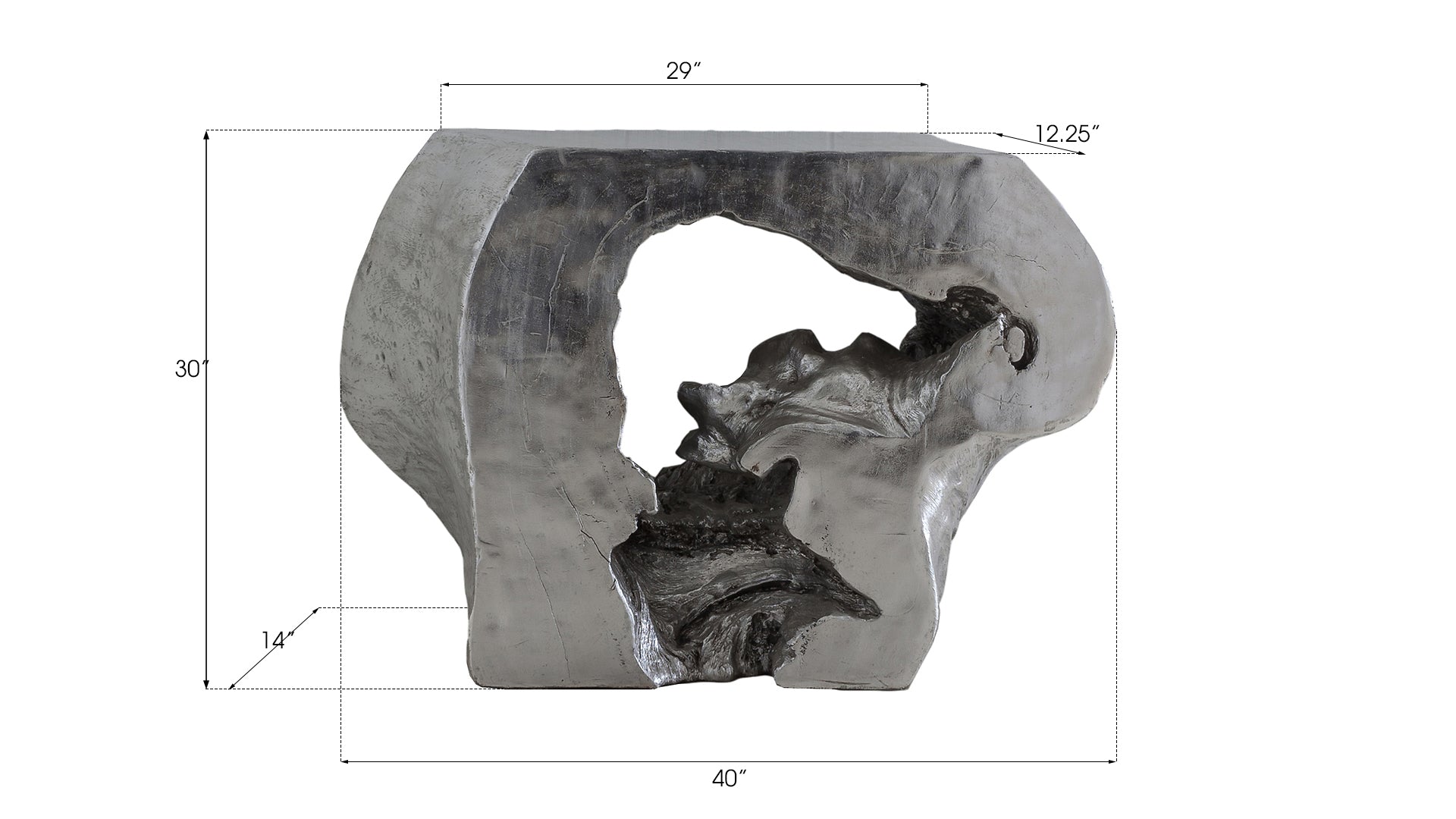 The Cast Naturals Collection highlights our skill at taking an innovative material and making it feel as if it sprang from nature. The Plateada Copper Hollow Console is made of composite that has been molded to look like a piece of burled wood it took nature eons to create. The advantage of having a console table made from this durable material is that it will long outlast its natural counterparts pulled from the forest floor. This piece is the perfect representation of the Phillips Collection ethos: modern organic. We offer the Plateada Consoles in a number of finishes.