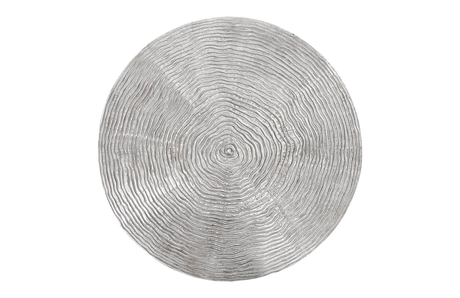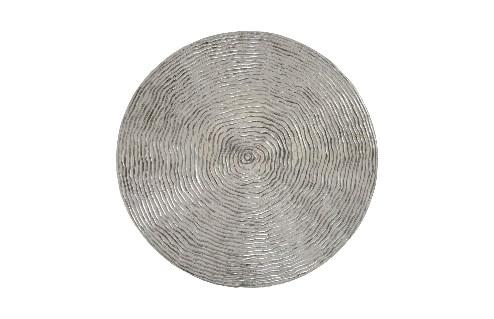 Any designer will affirm the importance of texture in a space, which makes the Ripple family of furnishings a favorite. The Ripple Gray Coffee Table is made of aluminum in a mix of black and silver finishes, the intermingling of the dark and bright highlighting the peaks and valleys of the striated surface to heighten the texture even further. We also offer two sets of four wall disks, a round mirror, a silver coffee table, and a side table in this family of products. This gray coffee table reflects the ethos that Phillips Collection personifies: modern organic.