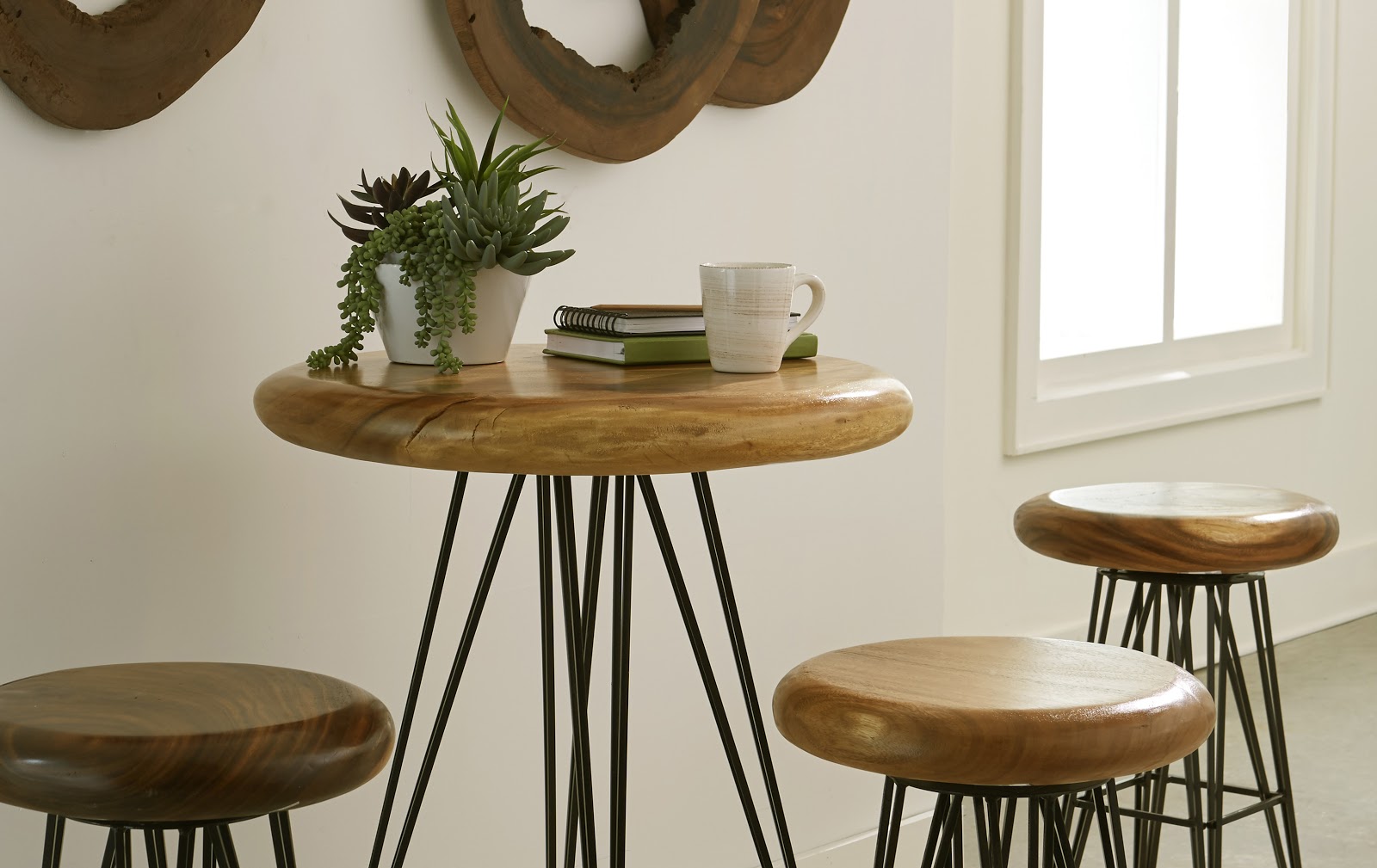 This simple, yet elegant bar stool is crafted from solid Chamcha wood, an acacia species native to Thailand. Hand sculpted with a rounded seat and metal legs, this bar stool will bring a soft organic look to any space.